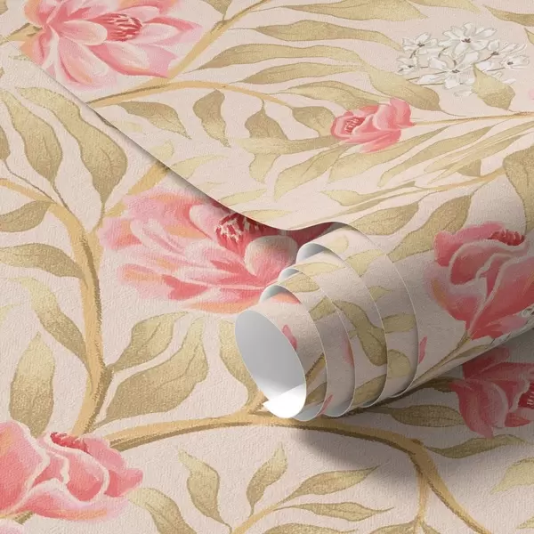 Wallpaper Pink flowers, white blossom and ochre-toned foliage a00855
