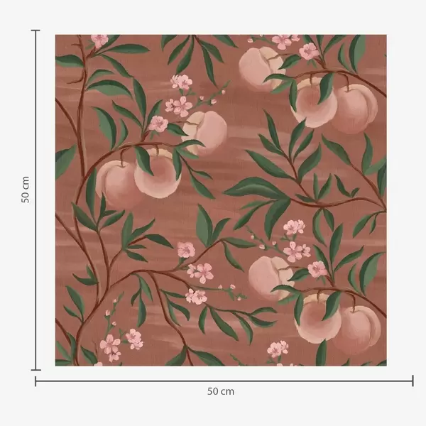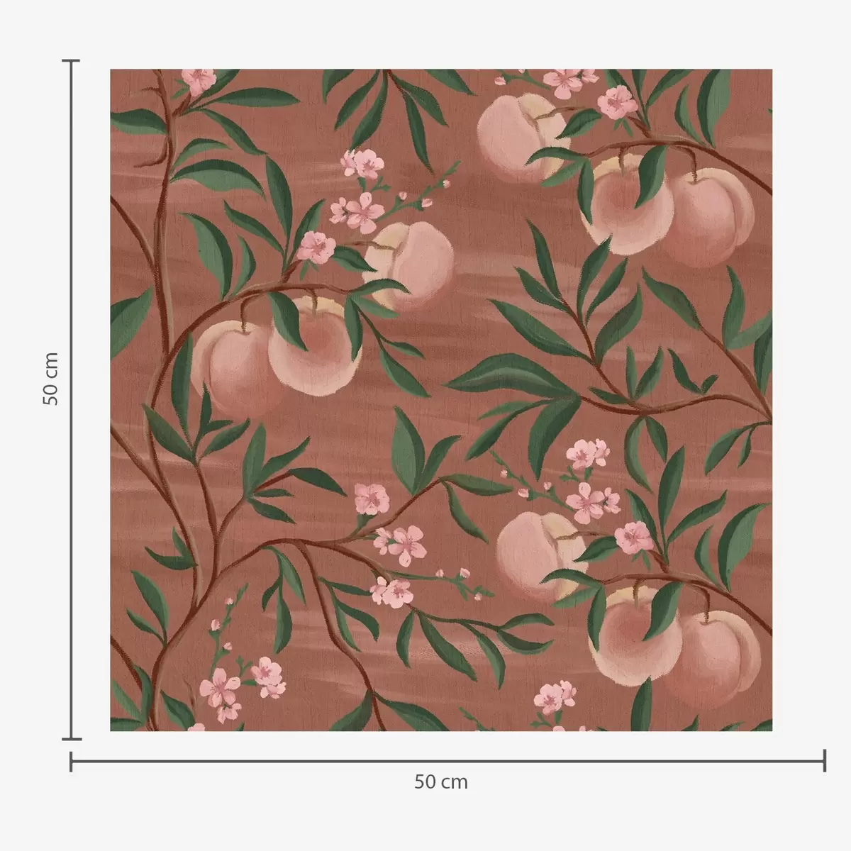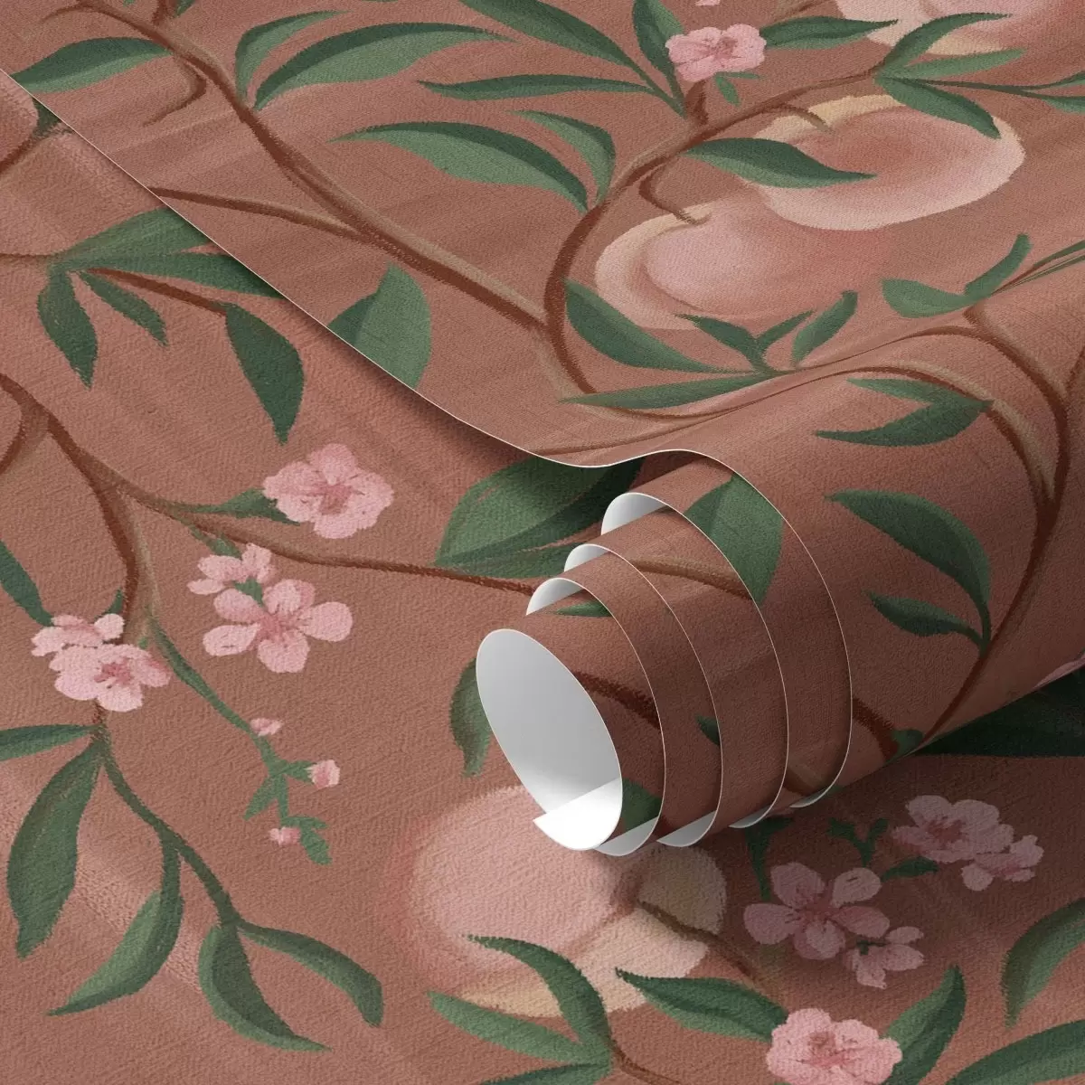 Wallpapers Peaches on branches with pink blossom, terracotta ground No. a00856