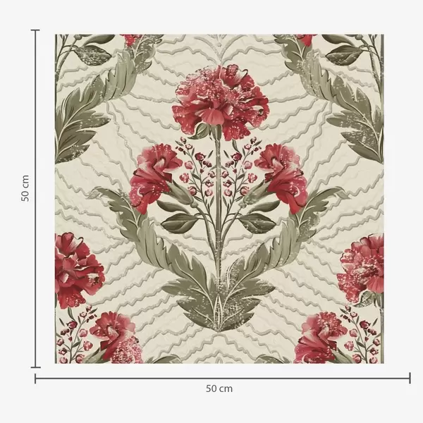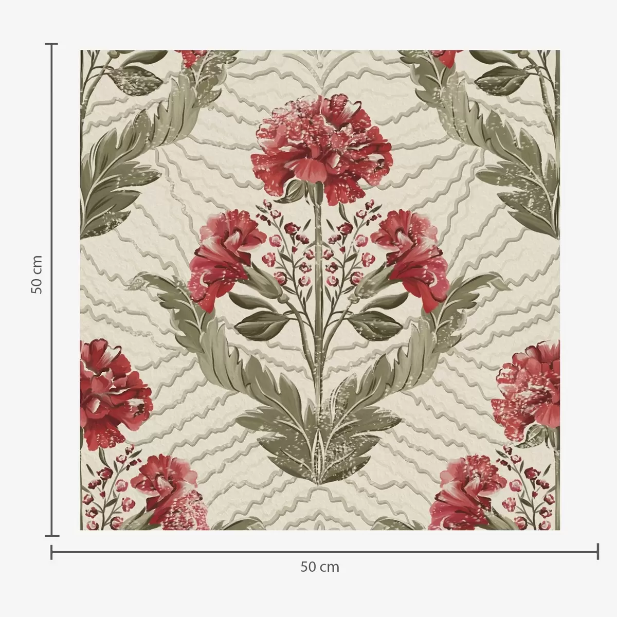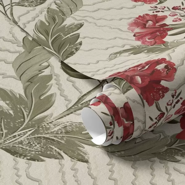 Wallpapers Large red peonies with graphic backdrop, cream ground No. a00857