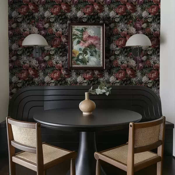 Wallpapers Dark dramatic peonies, berries and butterfly on black No. a00862
