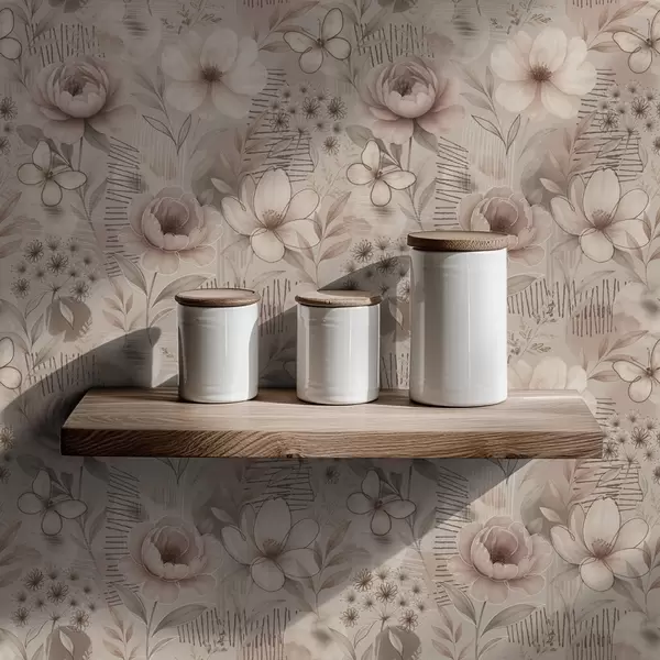 Wallpapers Sepia beige florals with butterfly and linear accents No. a00870