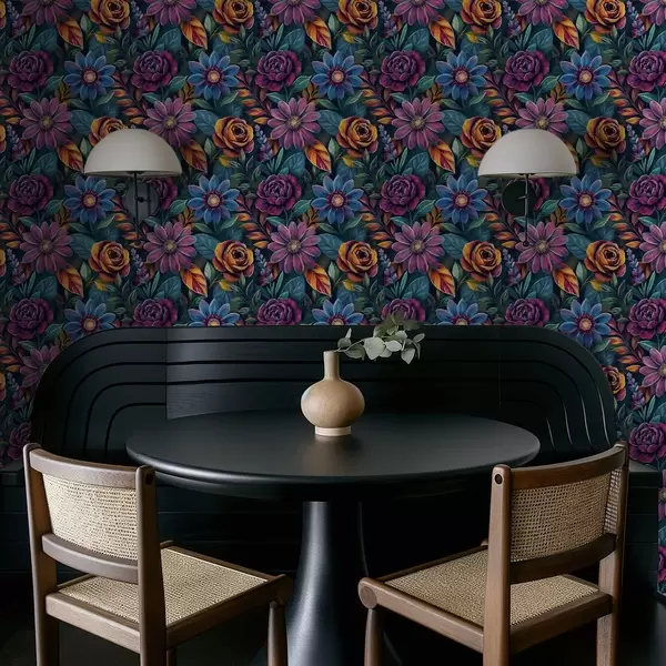 Wallpapers Vibrant jewel-tone florals on deep navy No. a00871