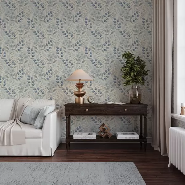Wallpapers Blue berries and light flowers on ivory No. a00872