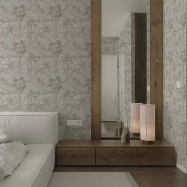 Wallpapers Misty palm grove in warm beige tones No. a00881