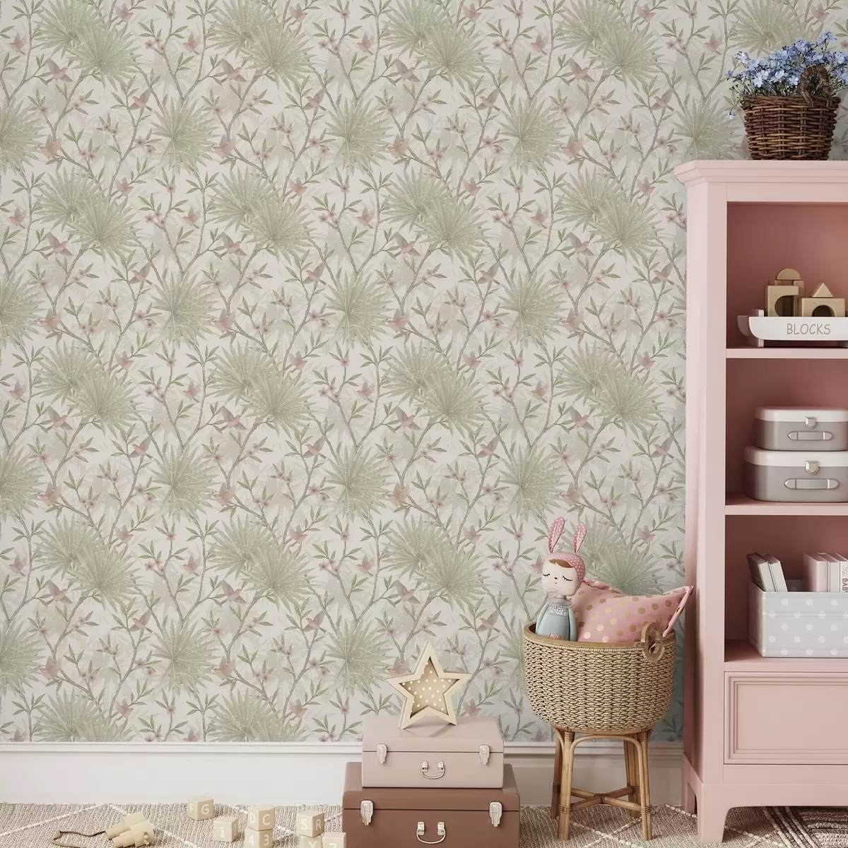 Wallpapers Delicate pink birds among palm leaves No. a00883