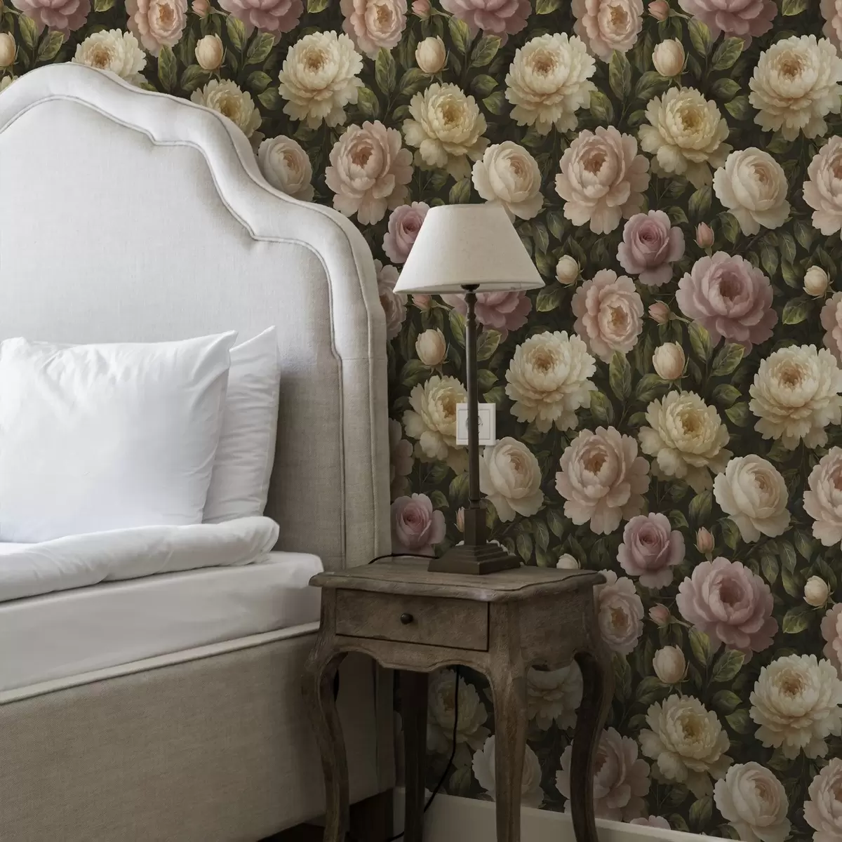 Wallpapers Romantic peonies on a dark botanical background No. a00893