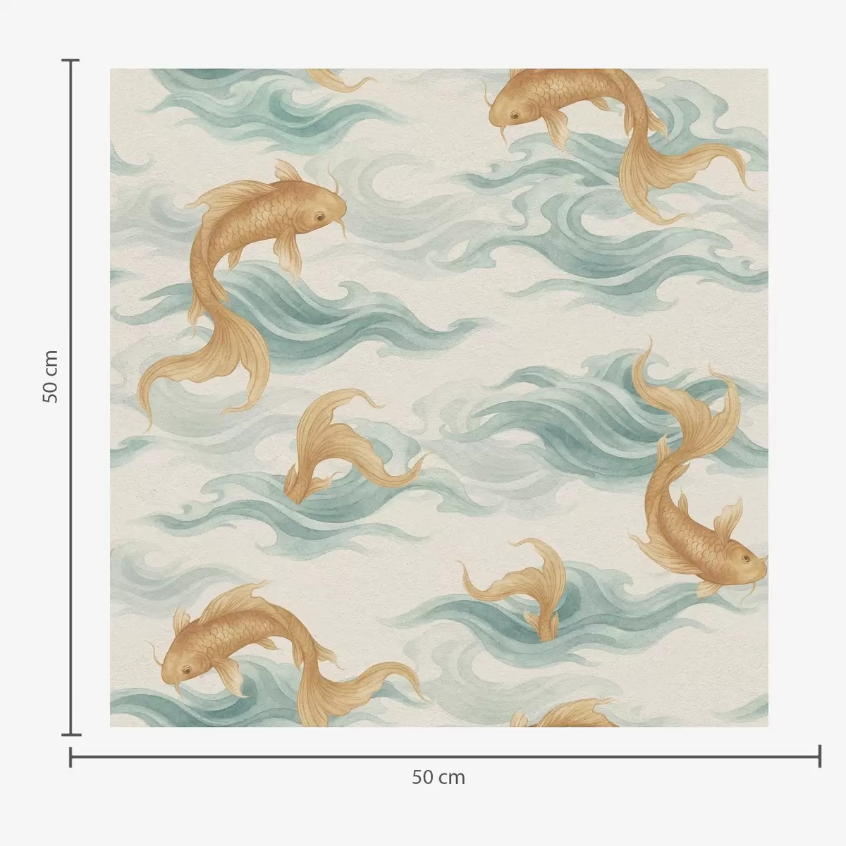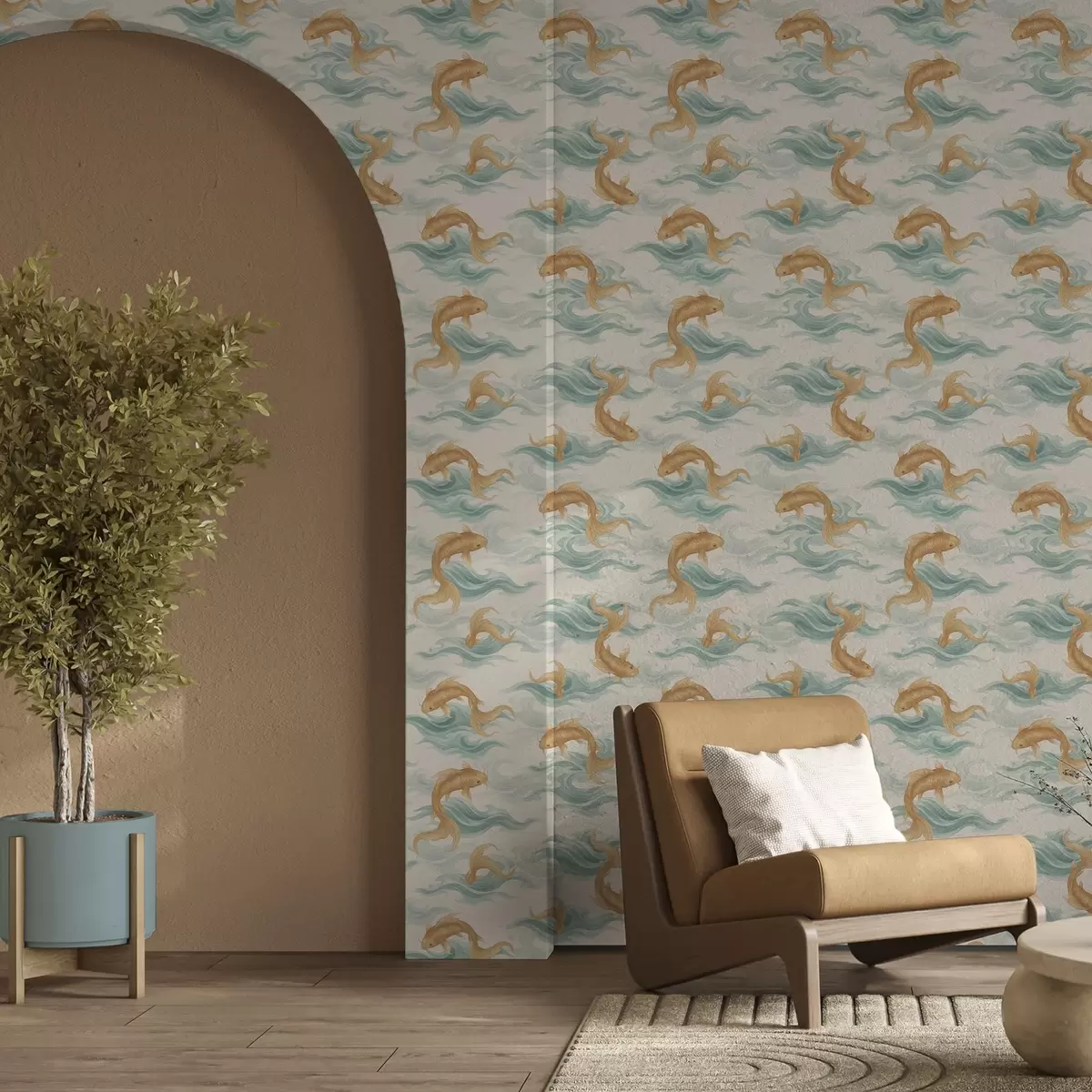 Wallpapers Amber koi fish swimming among soft turquoise waves No. a00894