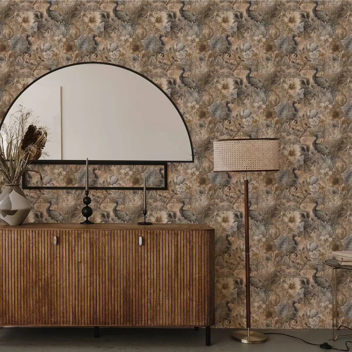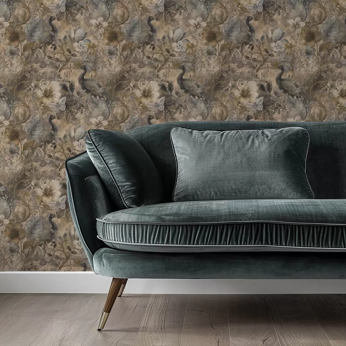 Wallpapers Aged floral collage with peacocks and butterflies No. a00897