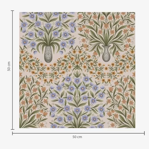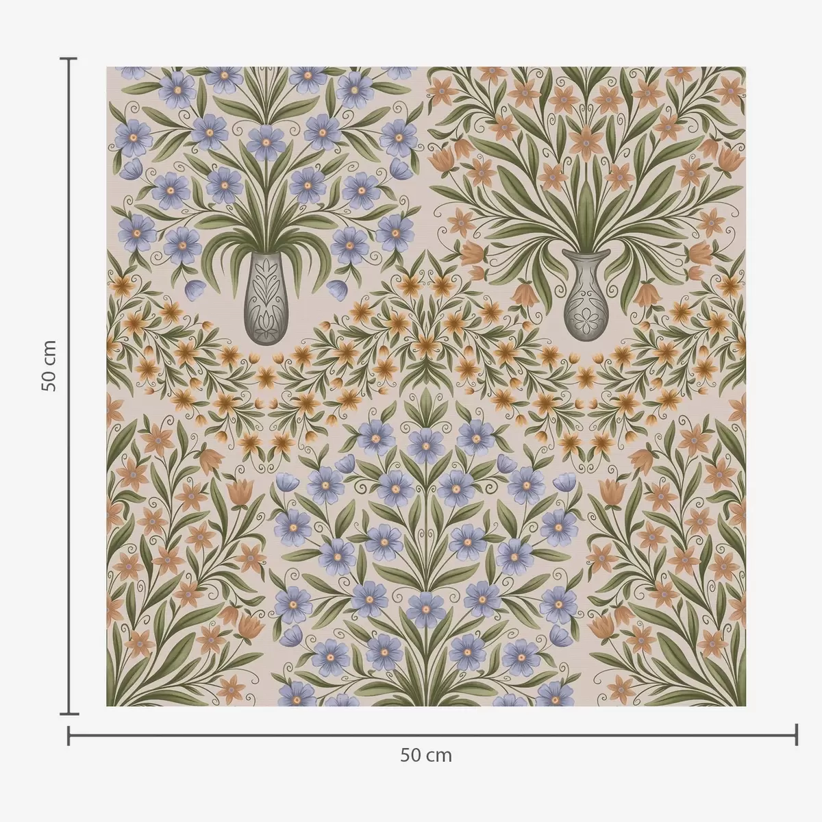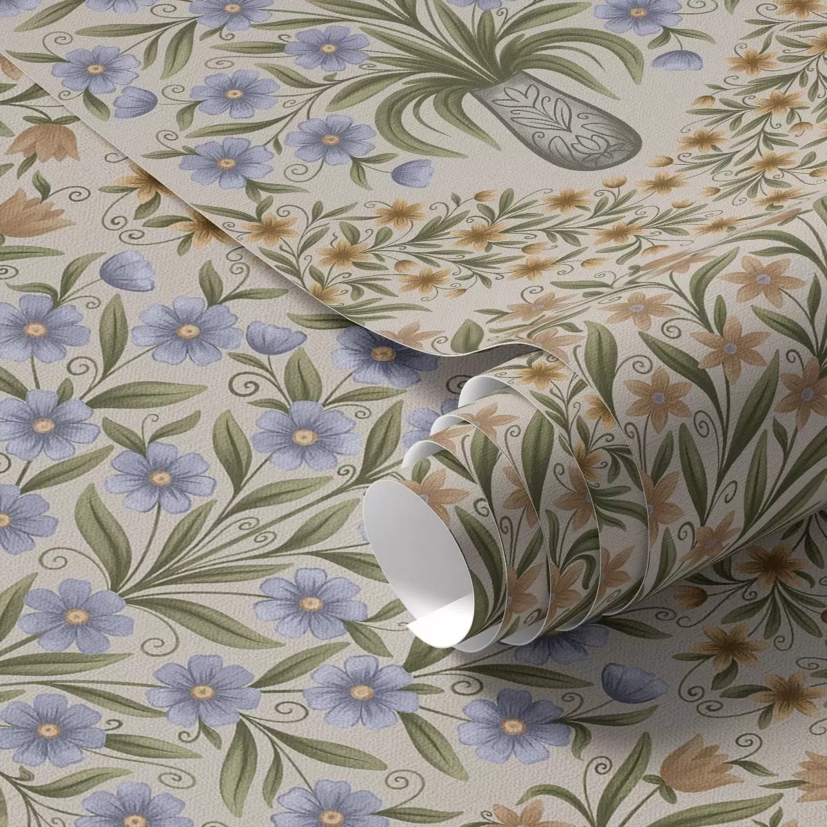 Wallpapers Alternating vases and blue florals in sage on blush No. a00901