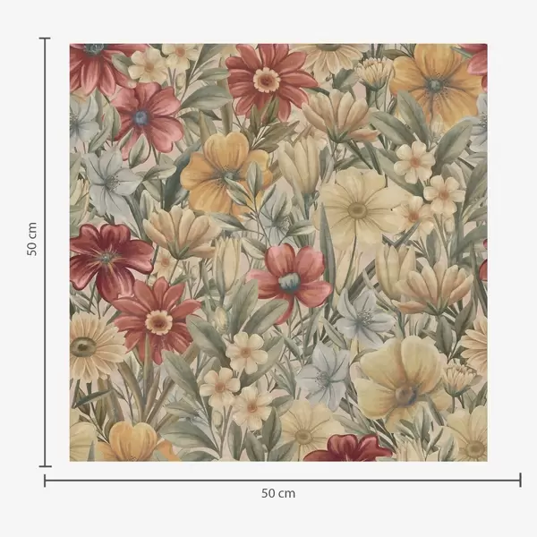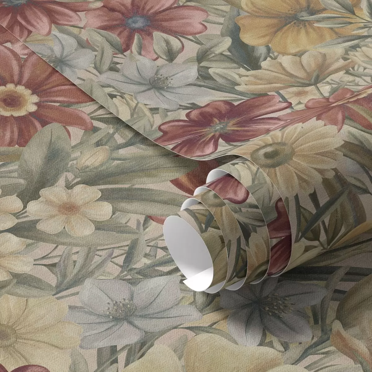 Wallpaper Vintage meadow blooms in warm yellows, reds and sage a00906