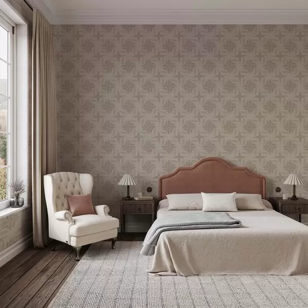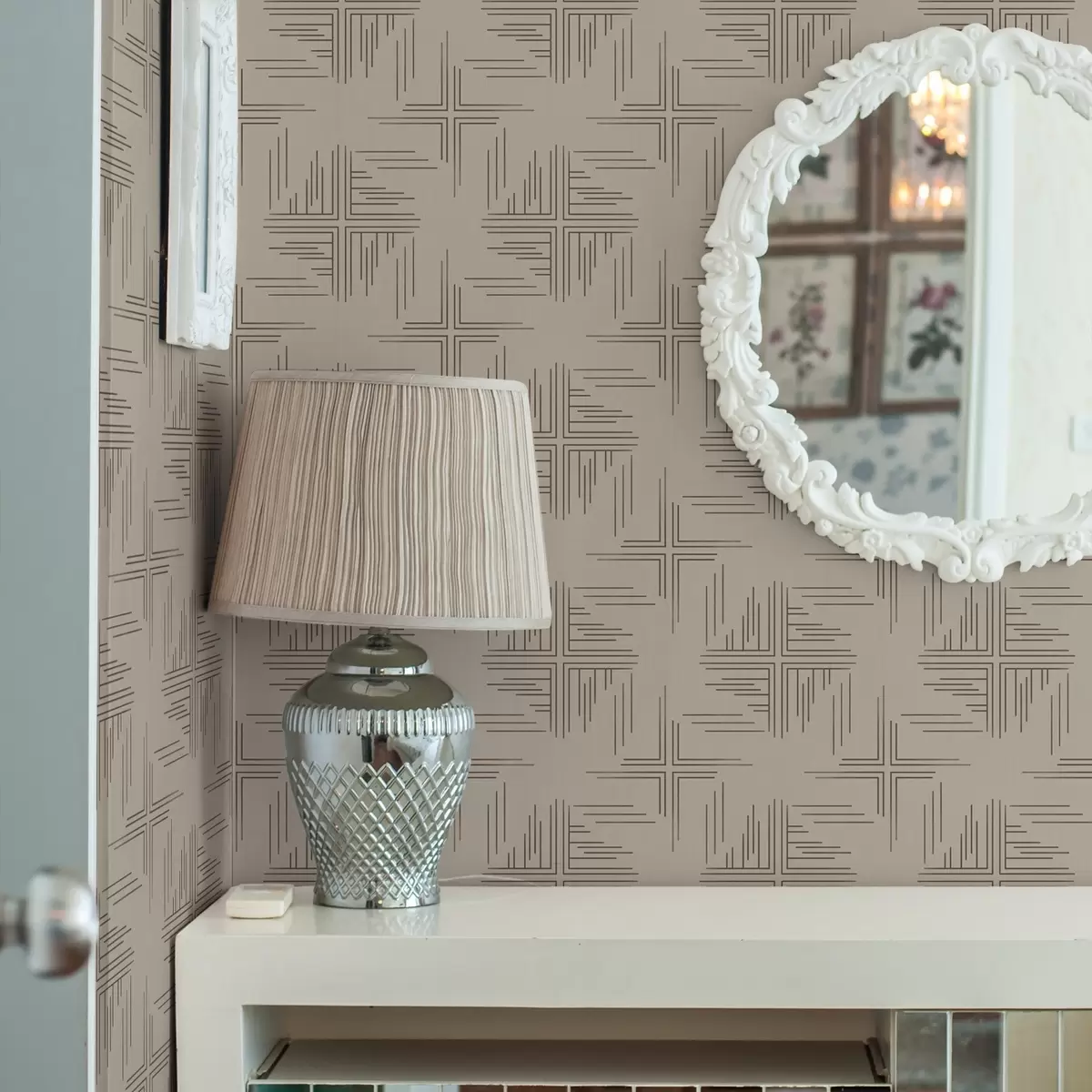 Wallpapers Cocoa linework grids with small central crosses, beige No. a00911