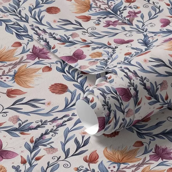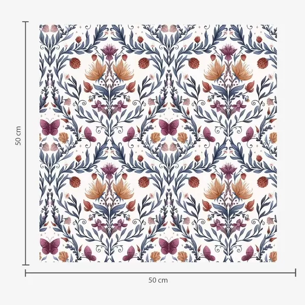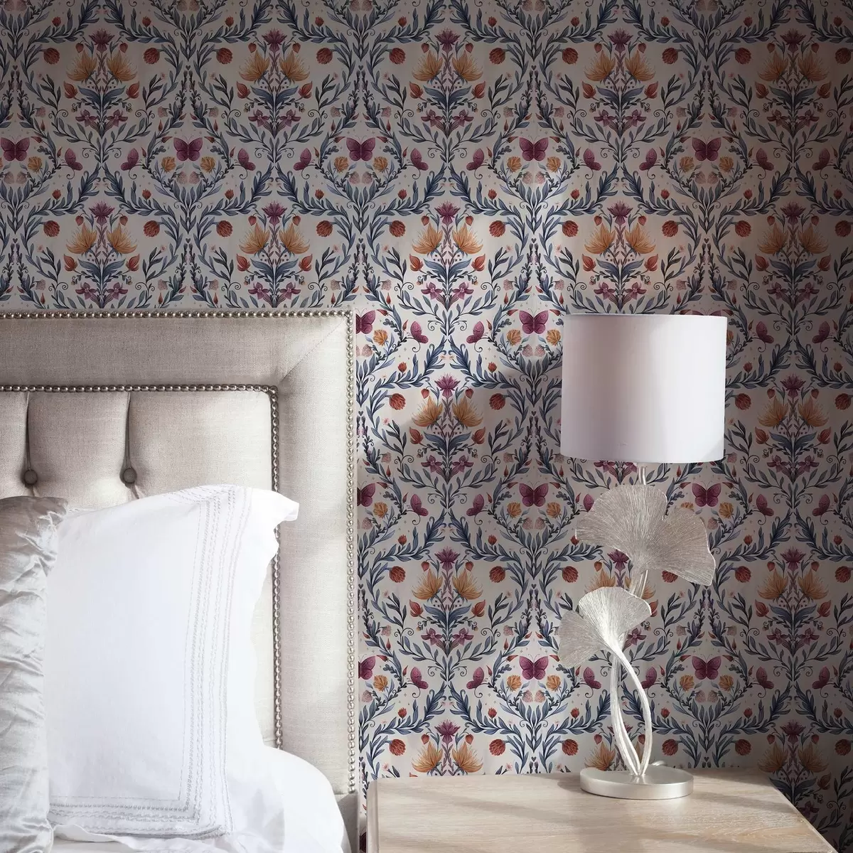 Wallpapers Floral damask with butterflies in navy and terracotta on white No. a00926v1
