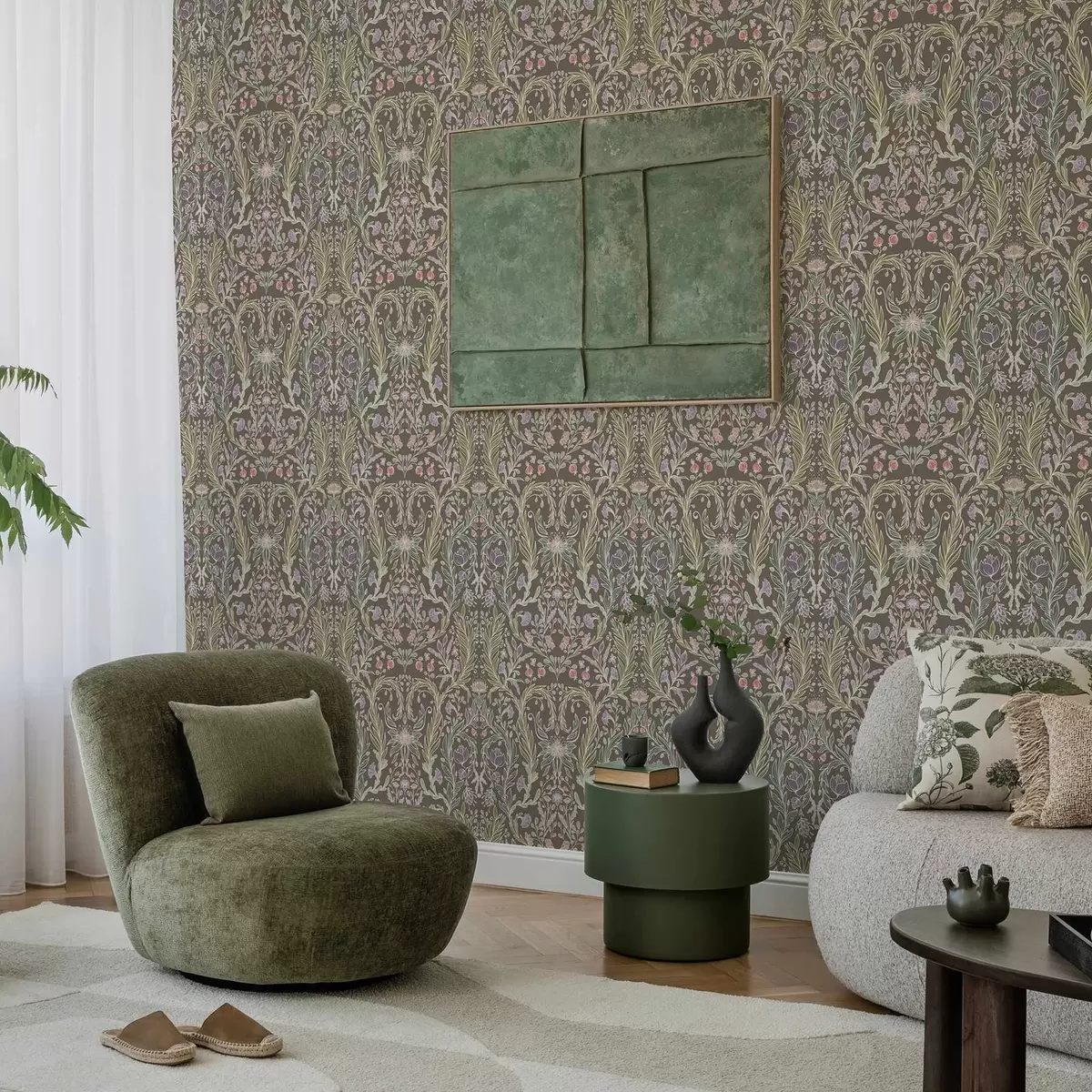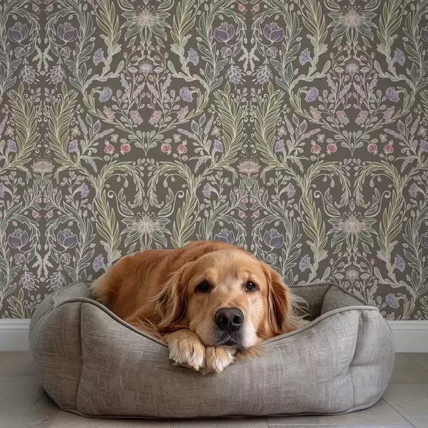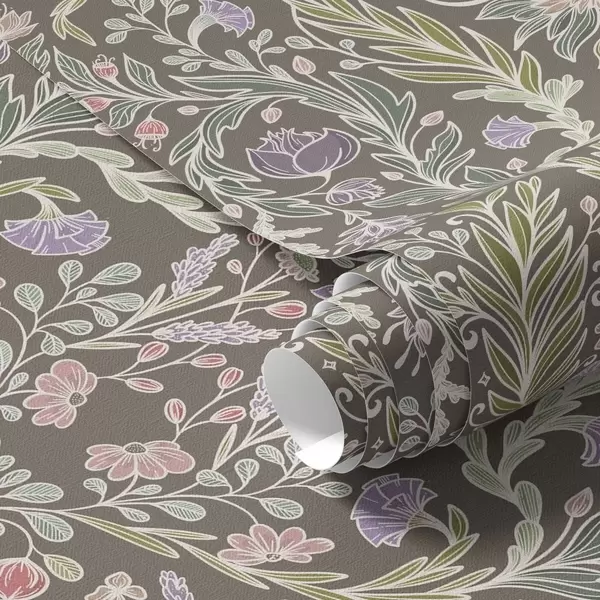 Wallpapers Symmetrical flowers and leaves on a brownish-grey background No. a00928v2