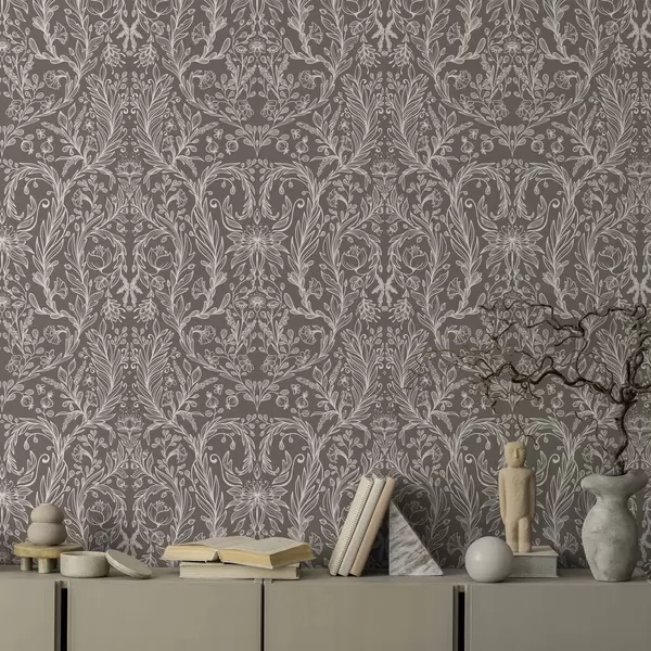 Wallpapers Monochrome botanical pattern on warm brown No. a00929v2