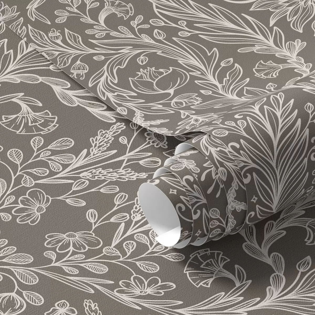Wallpapers Monochrome botanical pattern on warm brown No. a00929v2