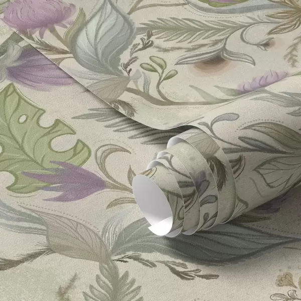 Wallpapers Lilac buds and soft greenery on a cream background No. a00930v2