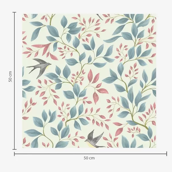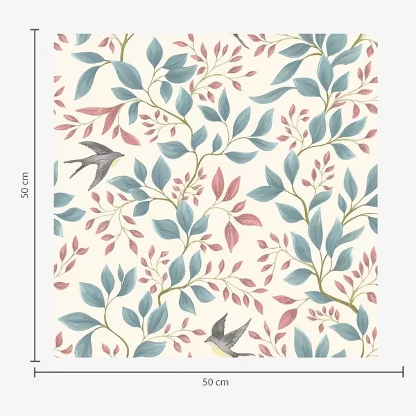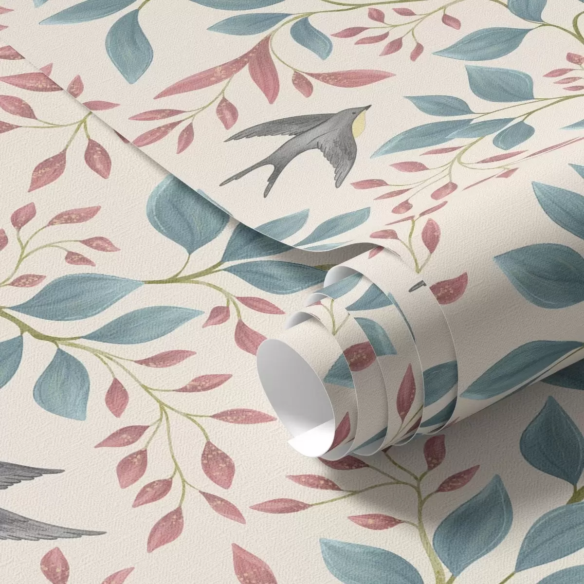 Wallpapers Blue and pink branches with birds on a cream background No. a00933