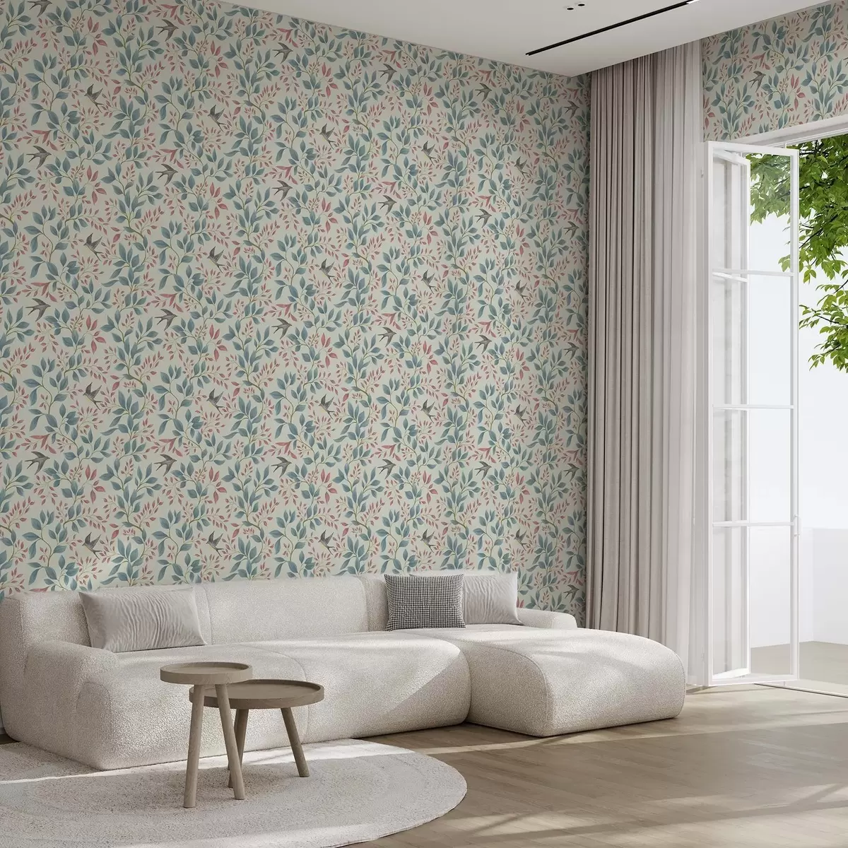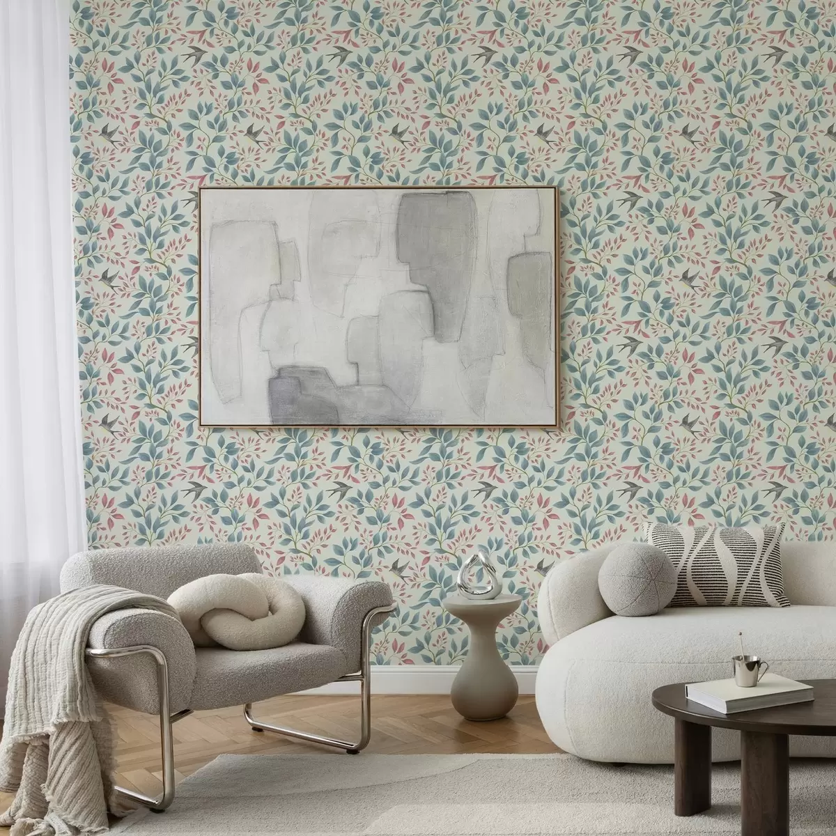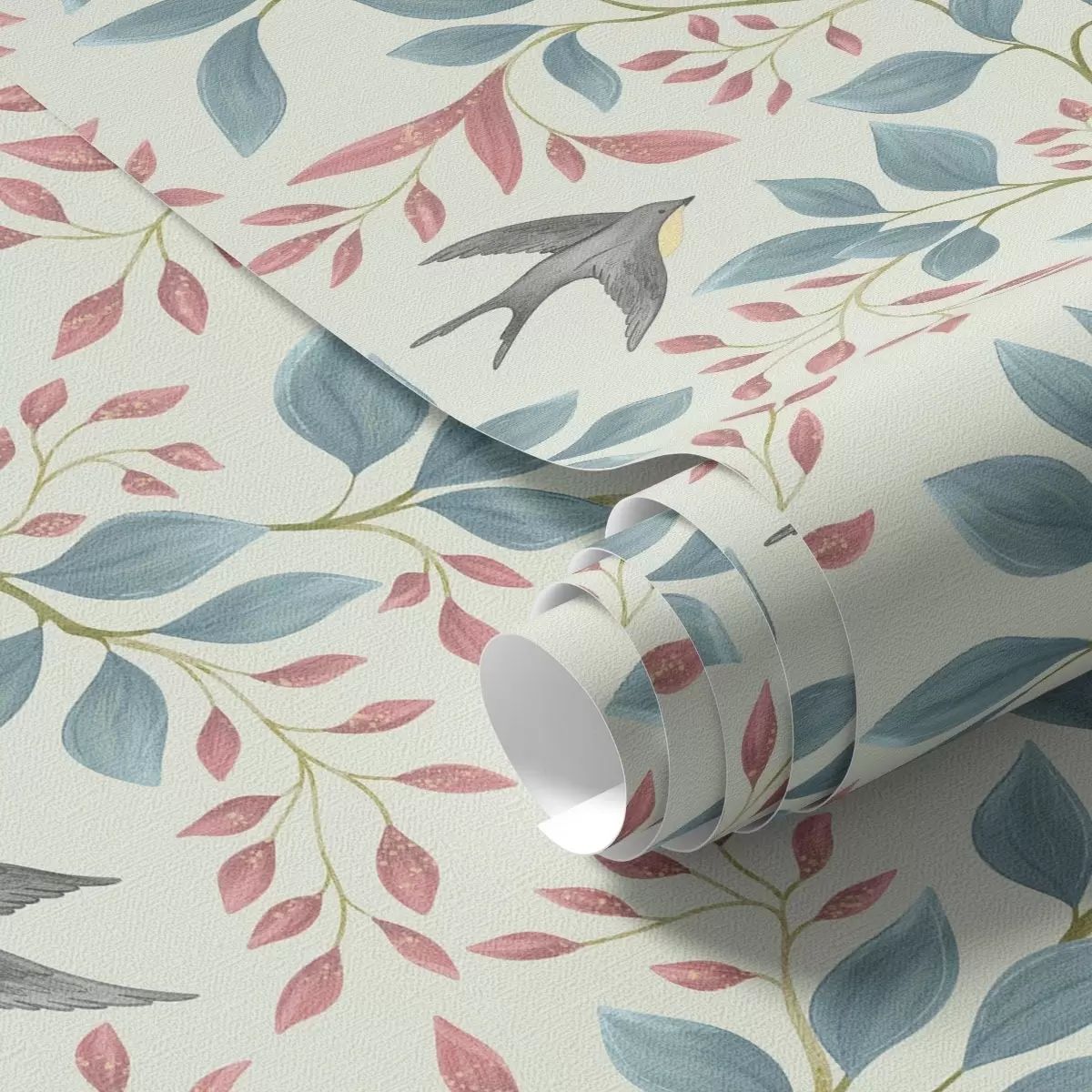 Wallpapers Airy branches and birds on a light mint background No. a00933v1