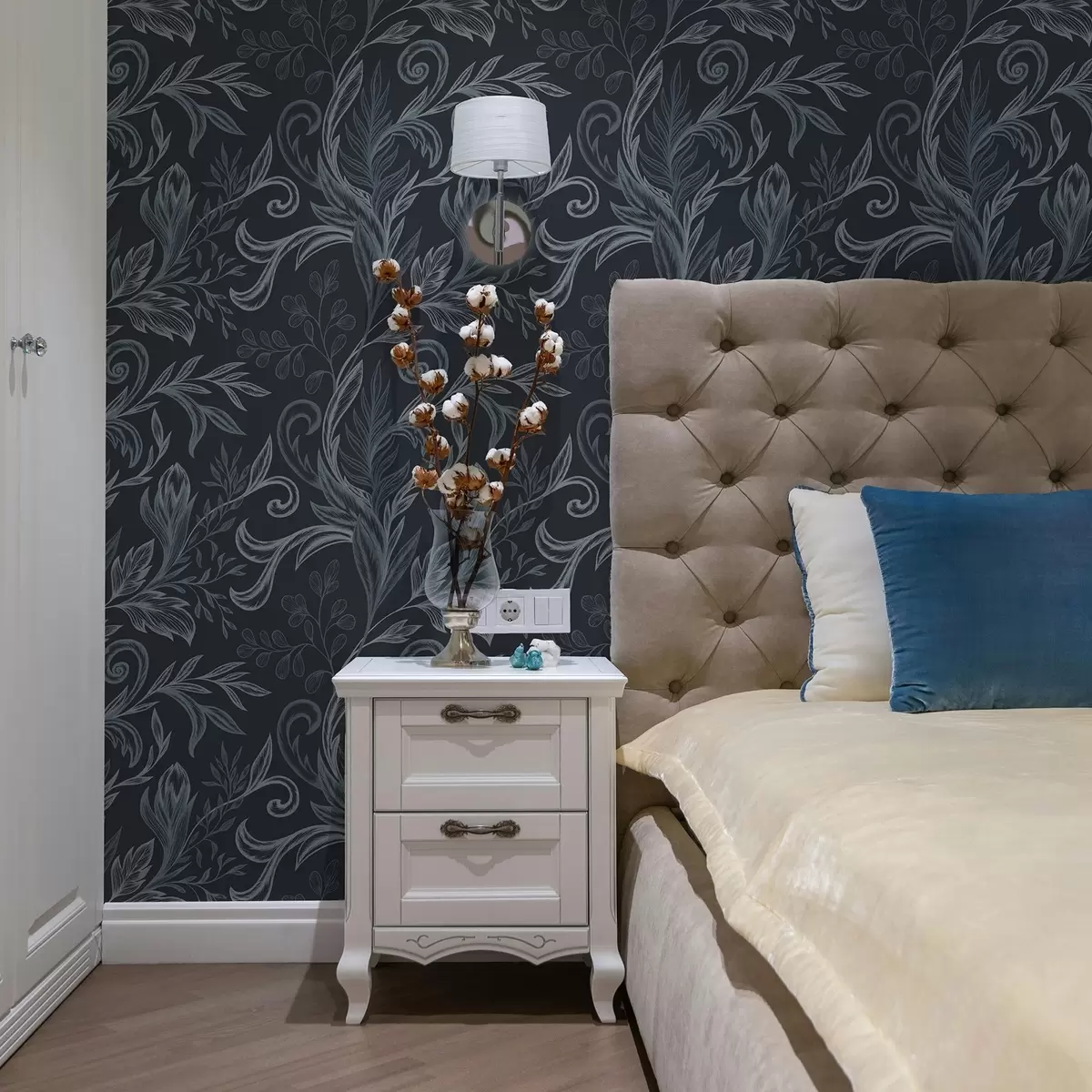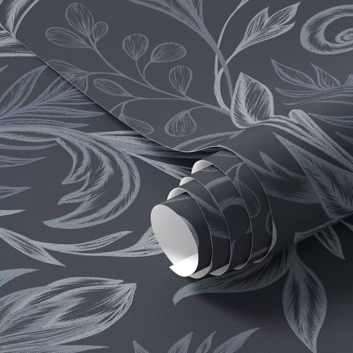 Wallpapers Dark indigo curled leaves with hand-drawn shading No. a00935