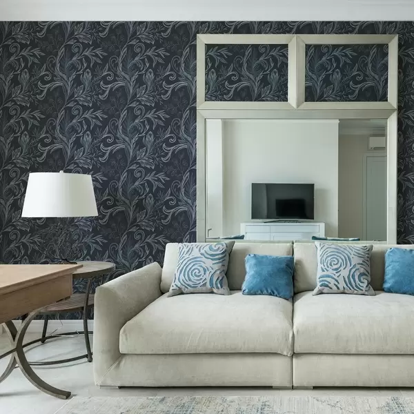 Wallpapers Dark indigo curled leaves with hand-drawn shading No. a00935