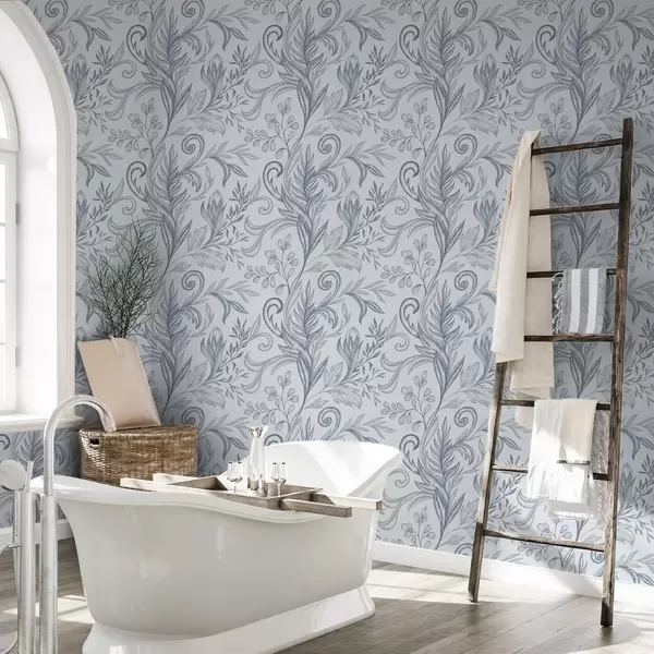 Wallpapers Light icy blue curled leaves with pencil texture No. a00935v1
