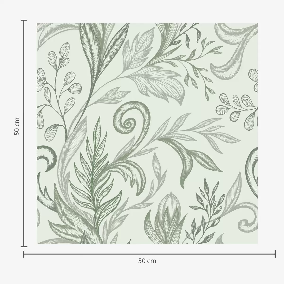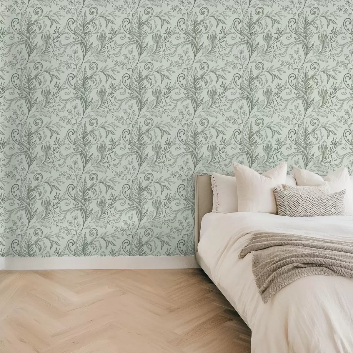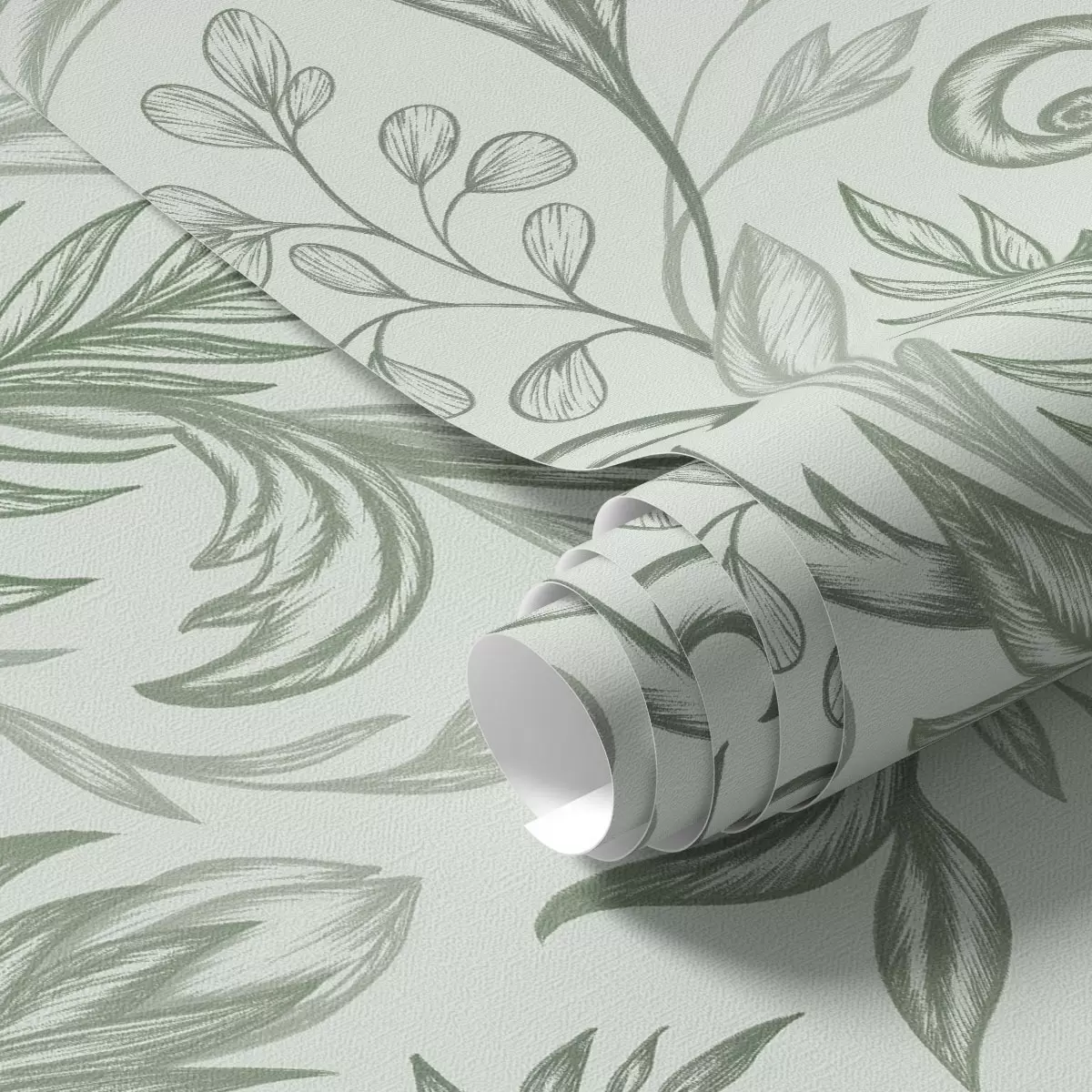 Wallpapers Soft mint curled leaves in delicate grey-green lines No. a00935v3