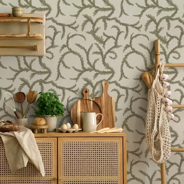 Wallpapers Soft green conifer curls on a light background No. a00938