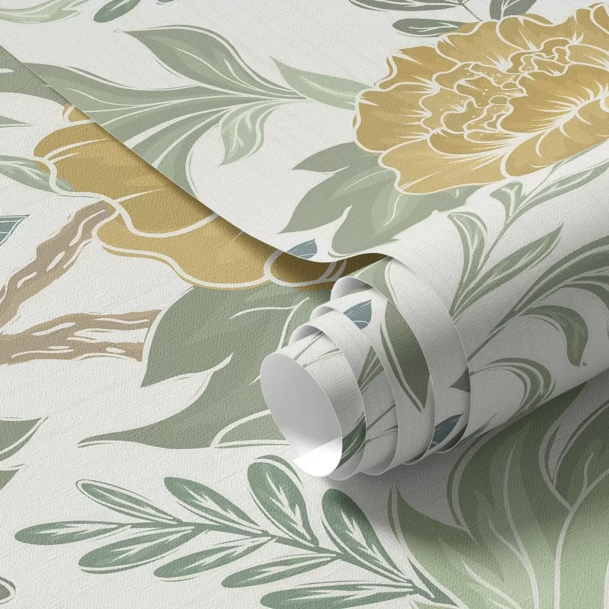 Wallpapers Large yellow peonies and greenery on a light background No. a00941