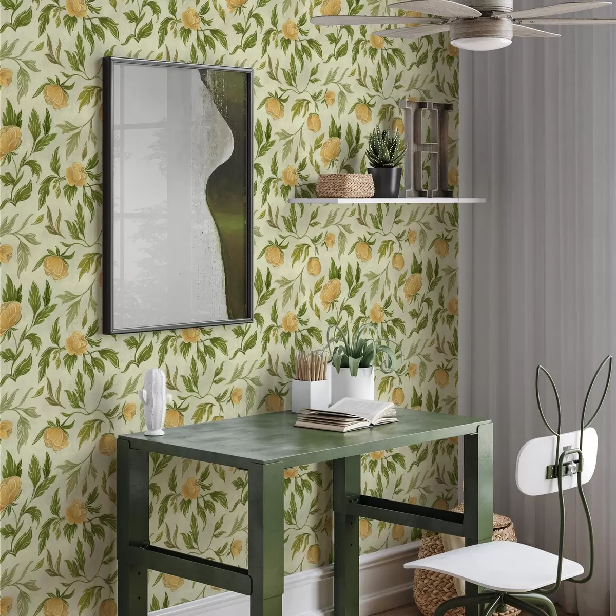 Wallpapers Yellow peonies and foliage on a soft light green background No. a00942