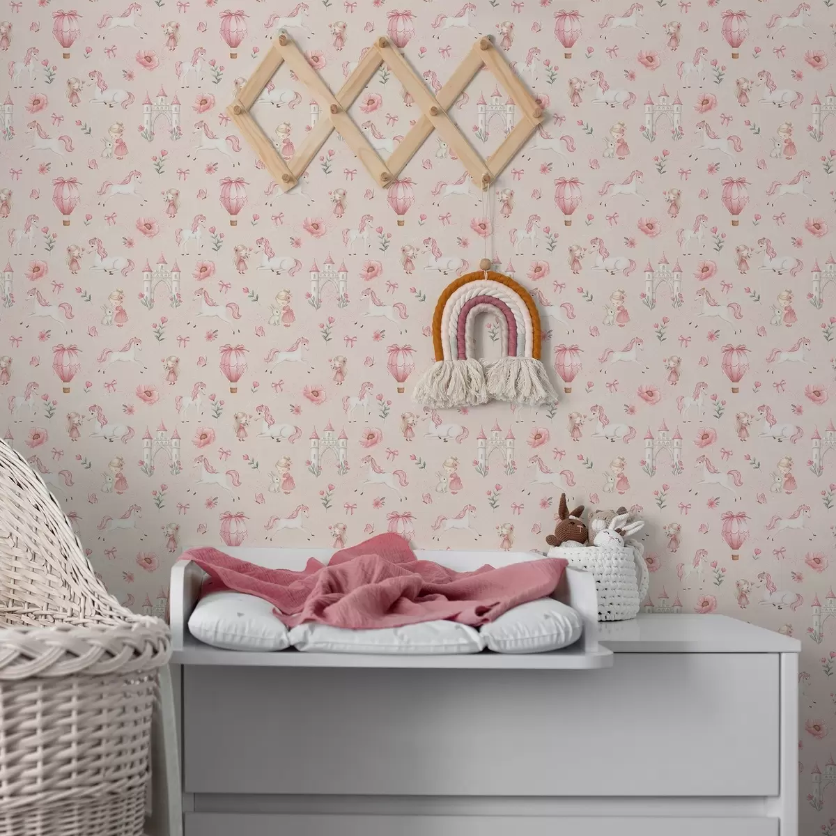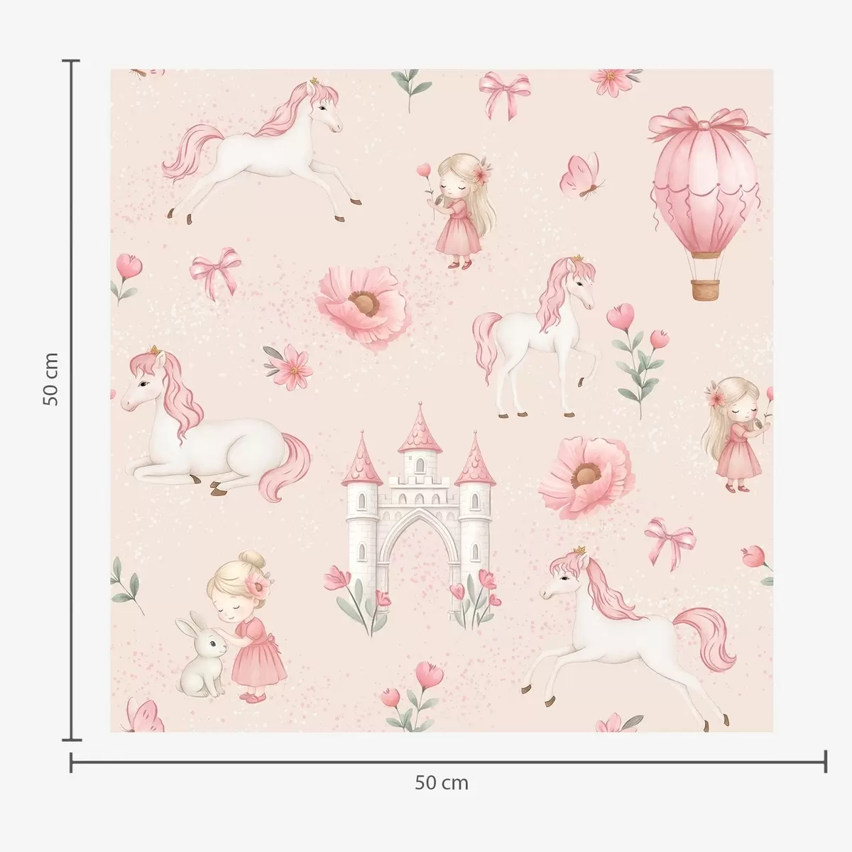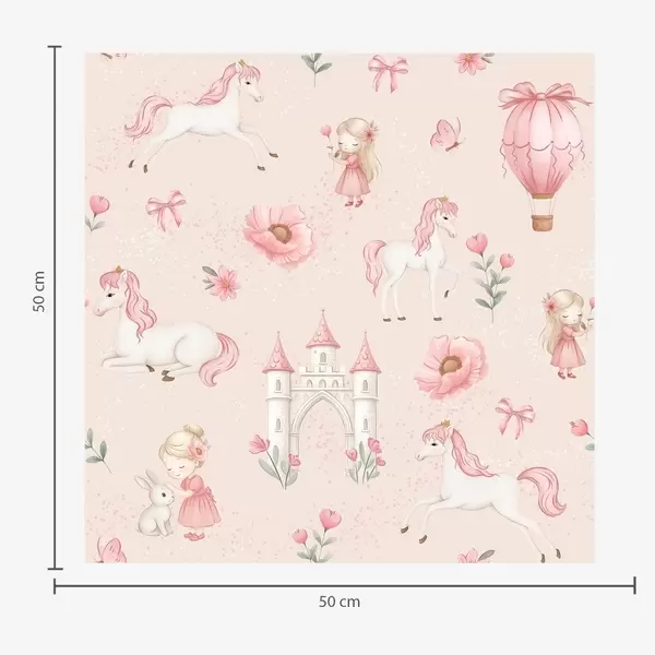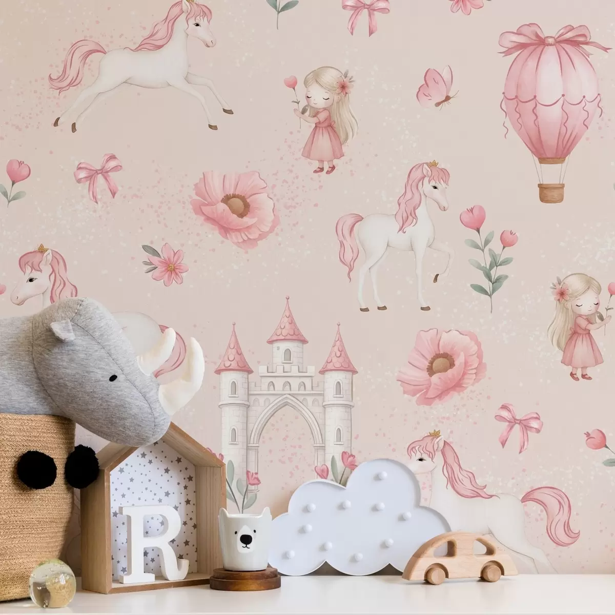 Wallpapers Pink unicorns, little girls and a castle on a soft background No. a00957