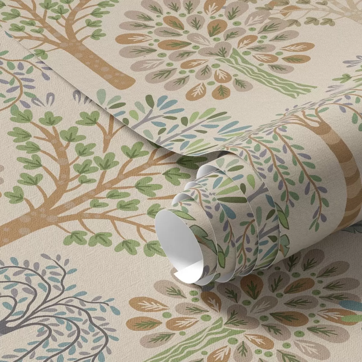 Wallpapers Decorative trees in a soft natural palette No. a00960