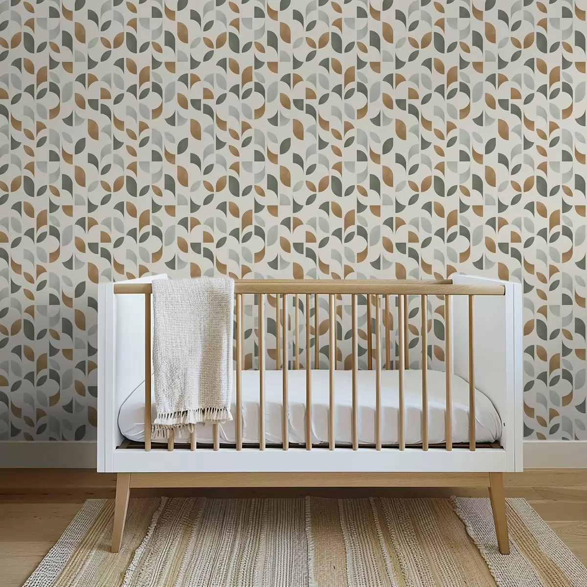 Wallpapers Vertical columns of half circles and leaves, green-terracotta No. a00986