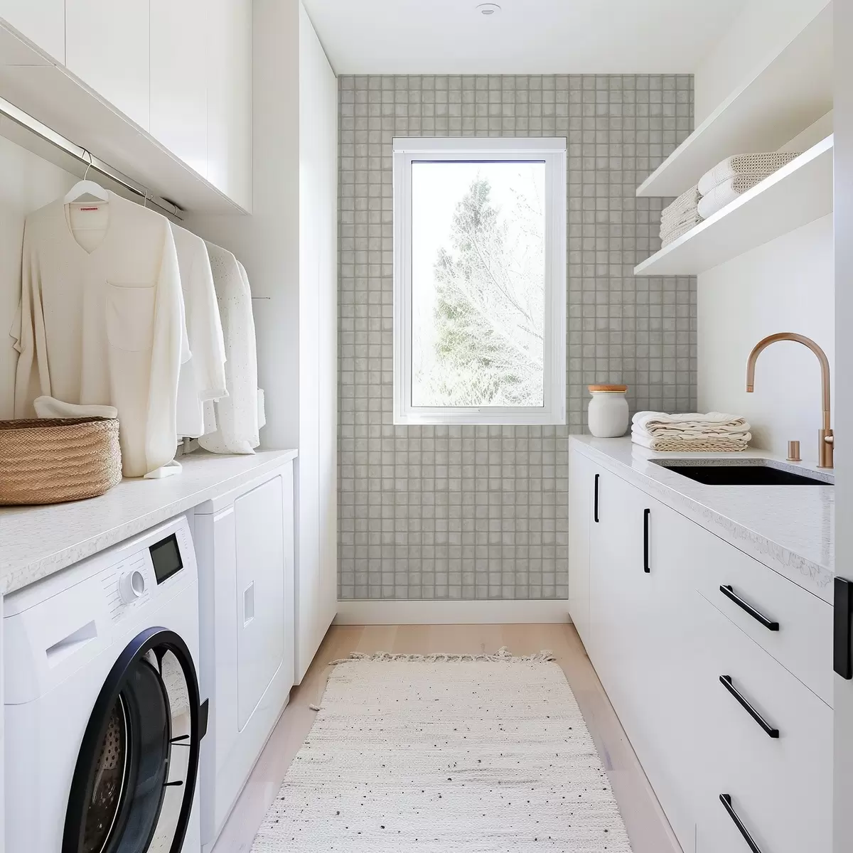 Wallpapers Imitation of square tiles in a soft grey-green palette No. a00988