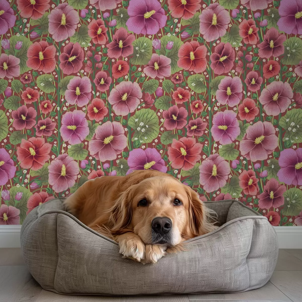 Wallpapers Blooming hibiscus on a warm brownish-red background No. a00993v1