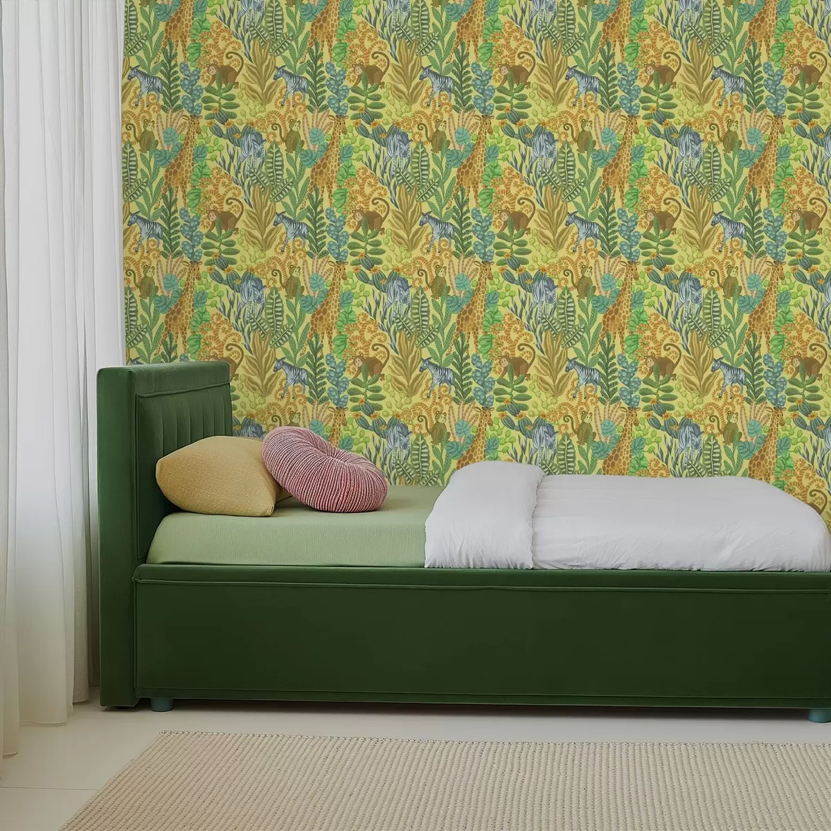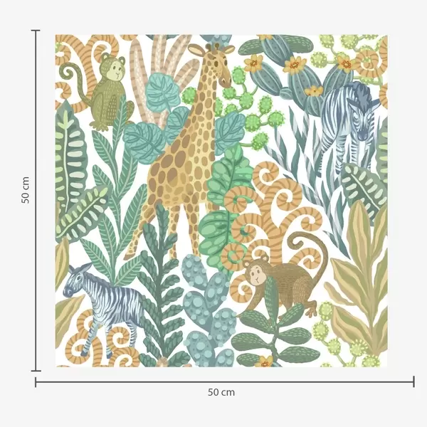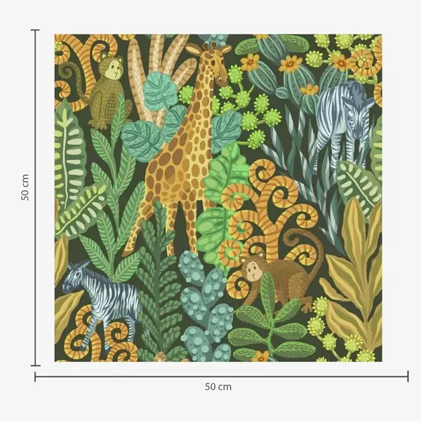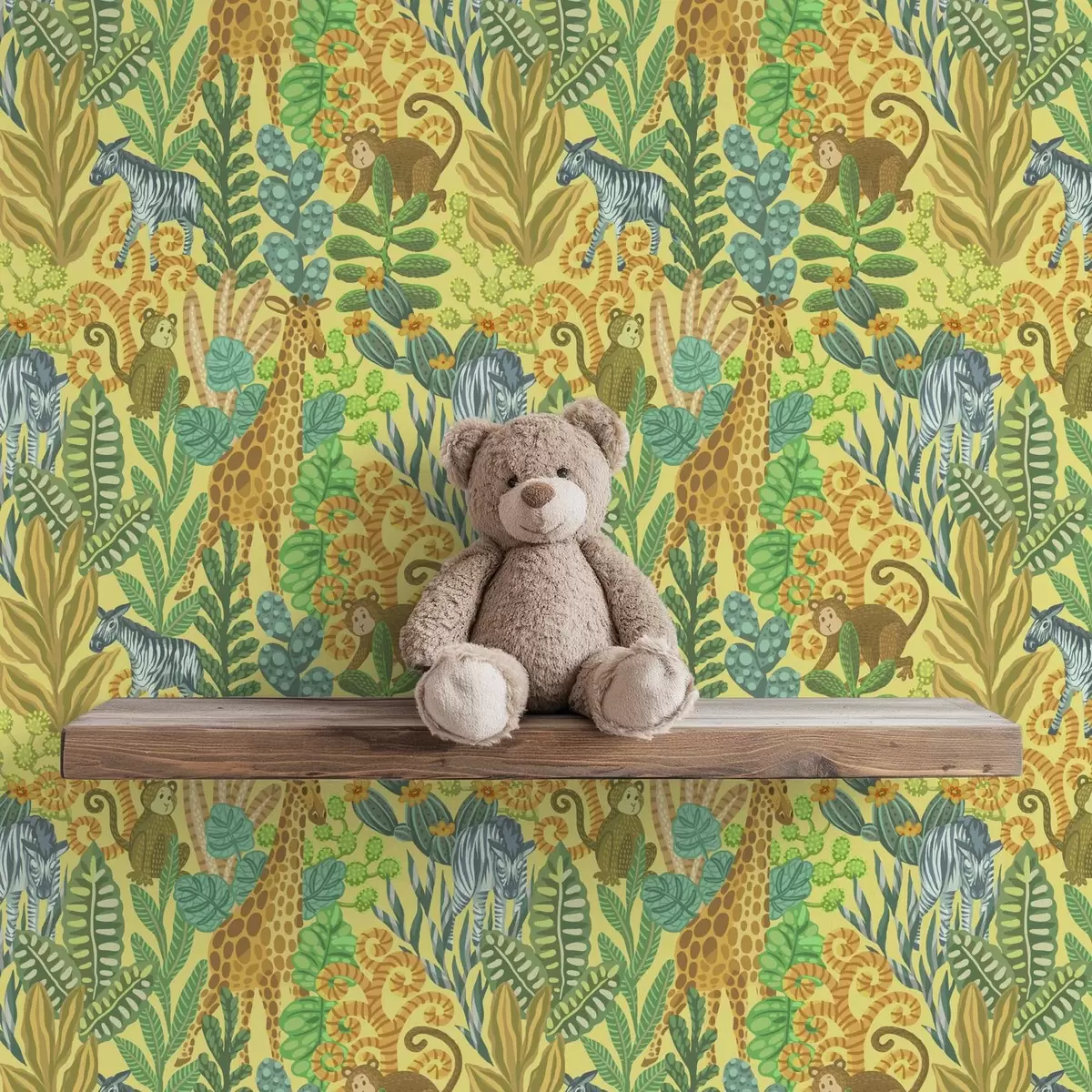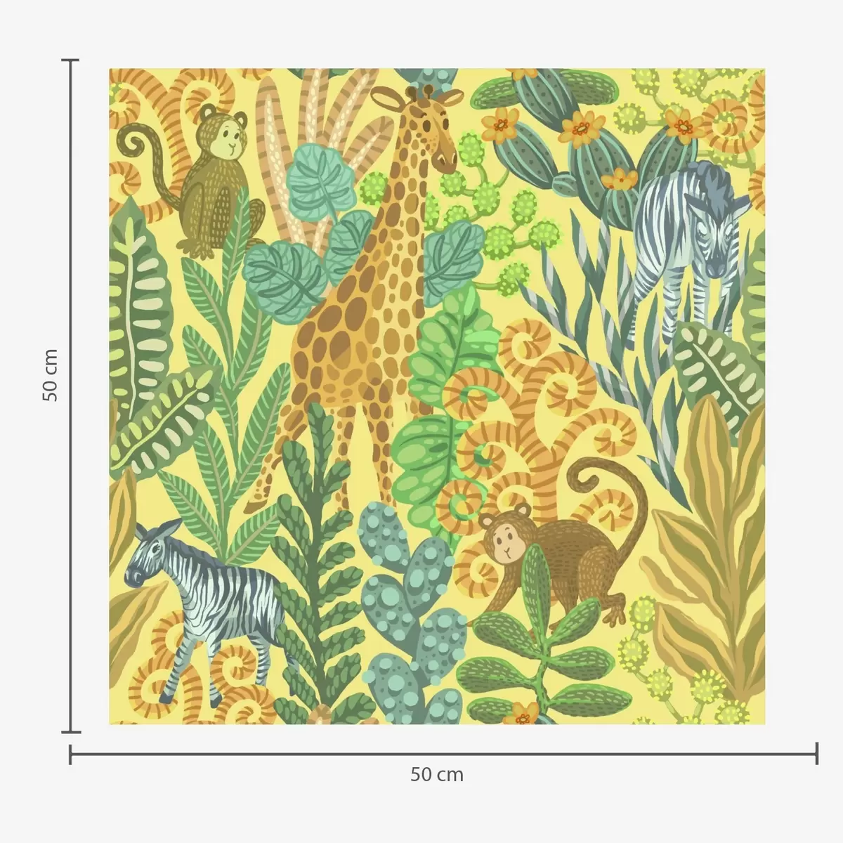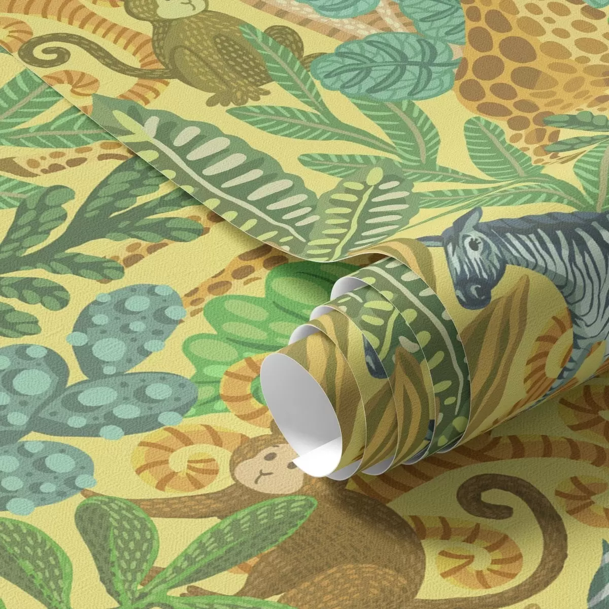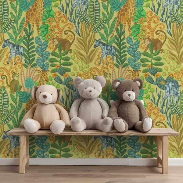 Wallpapers Giraffe, zebra and monkey in a bright yellow savanna No. a01000v1