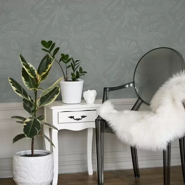 Wallpapers Matte large tropical leaves in a mint-grey palette No. a01001