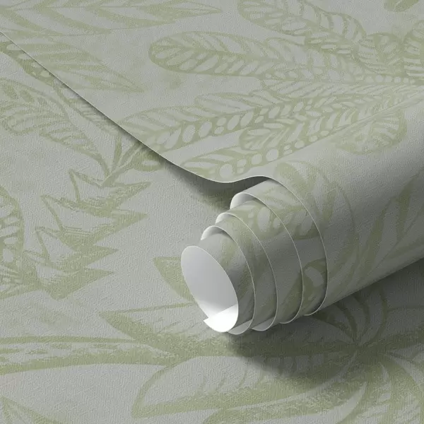 Wallpapers Sketched tropical leaves in fresh light green tones No. a01001v1