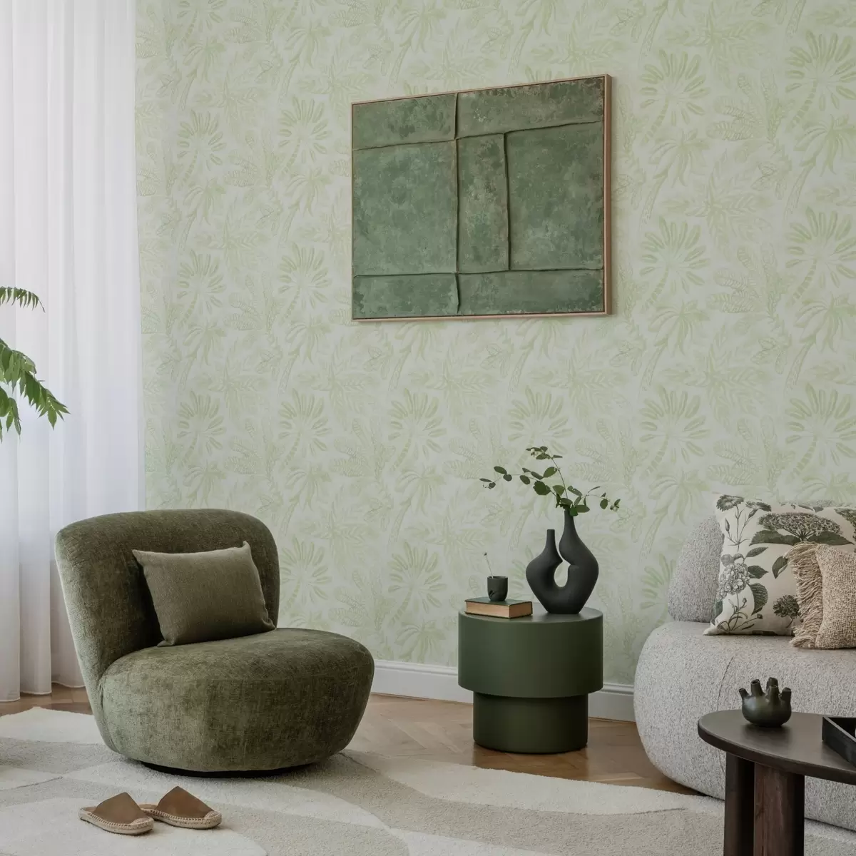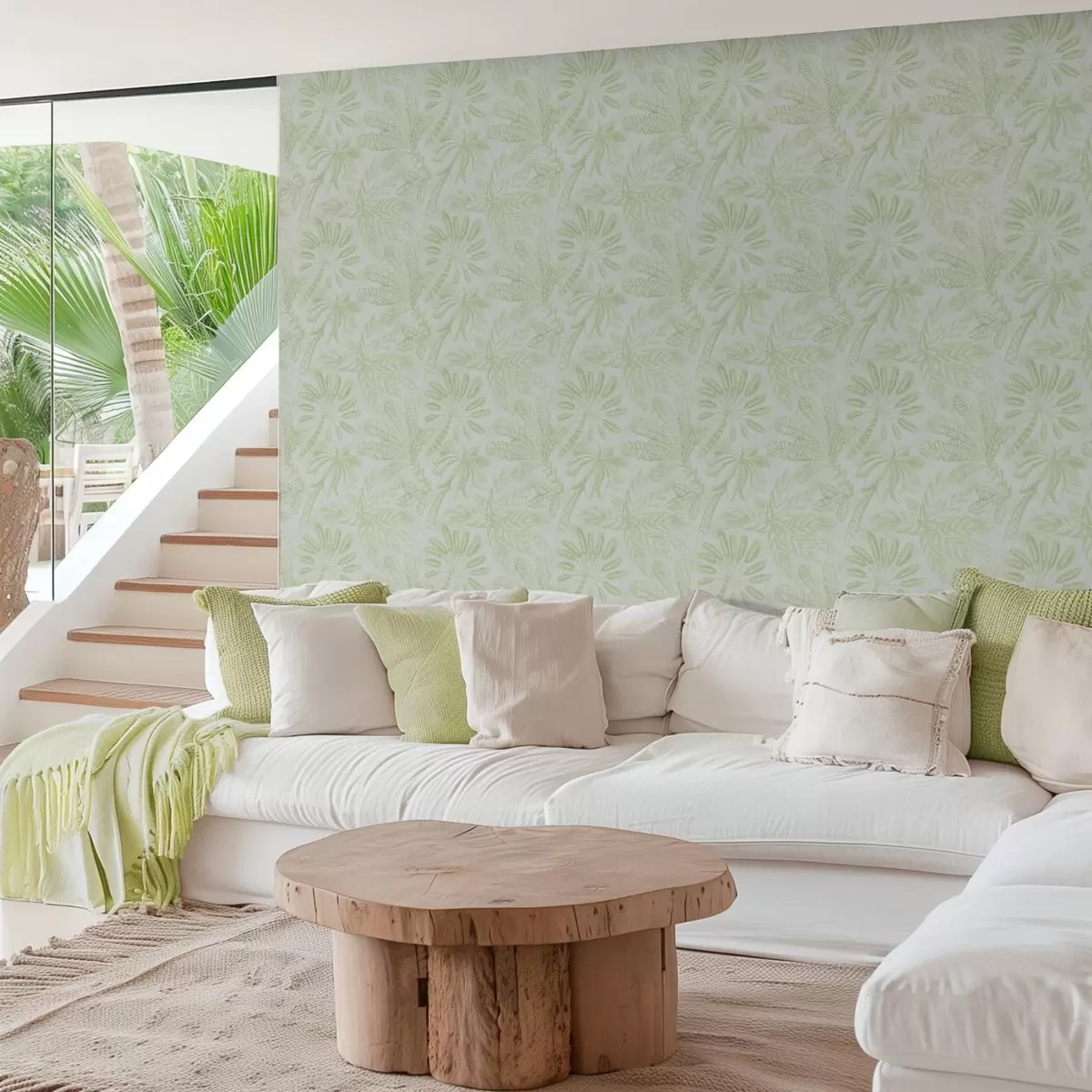 Wallpapers Sketched tropical leaves in fresh light green tones No. a01001v1
