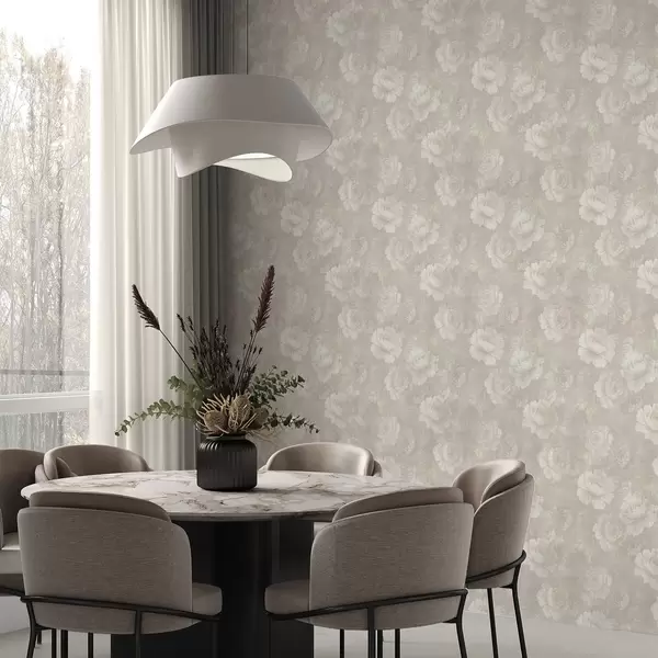 Wallpapers Faded peonies on linen texture in a soft beige palette No. a01018