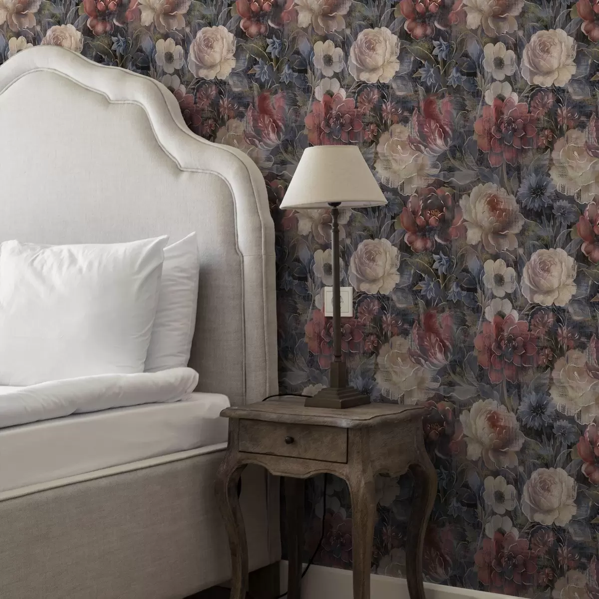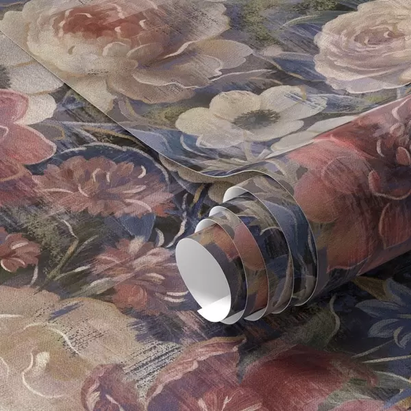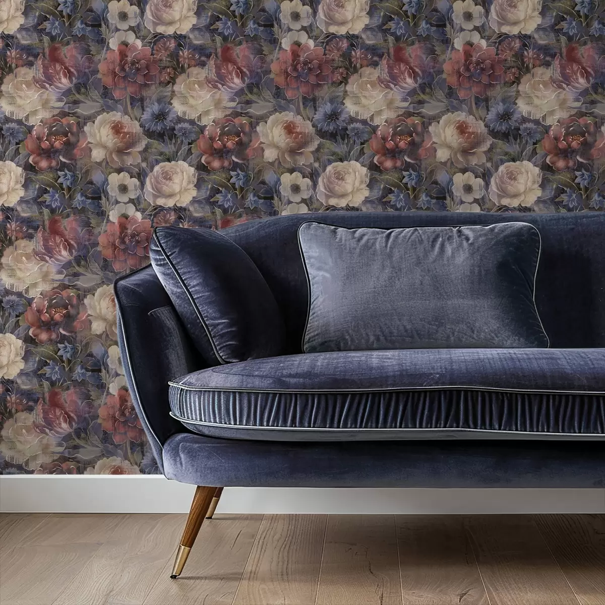Wallpapers Painterly bouquet of large flowers on deep indigo background No. a01021