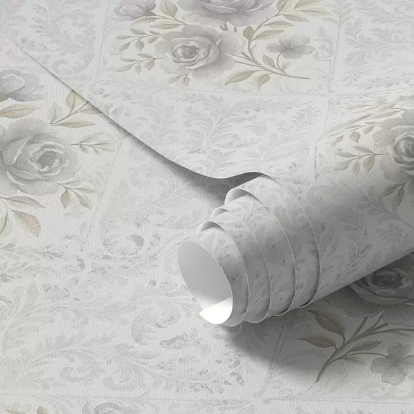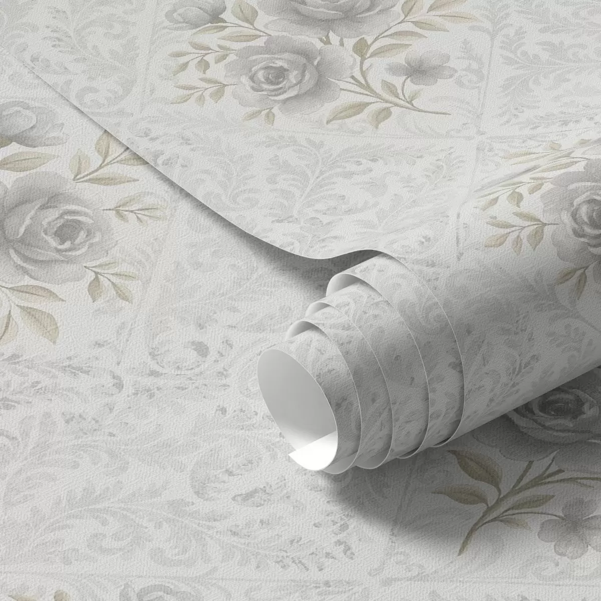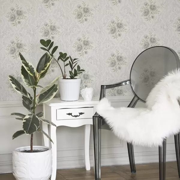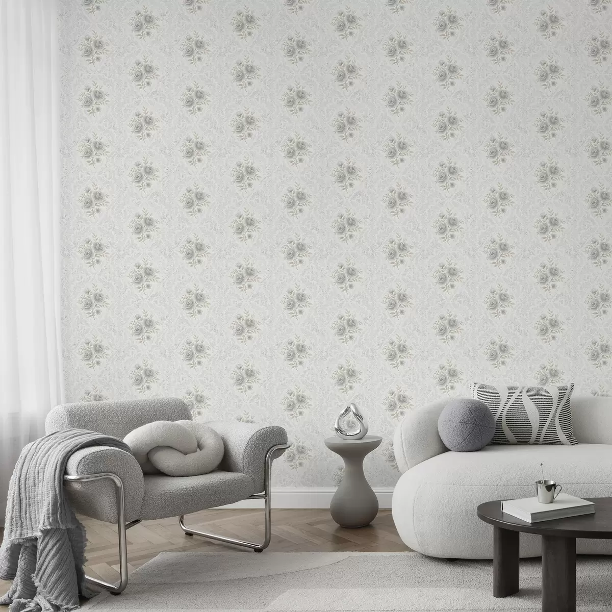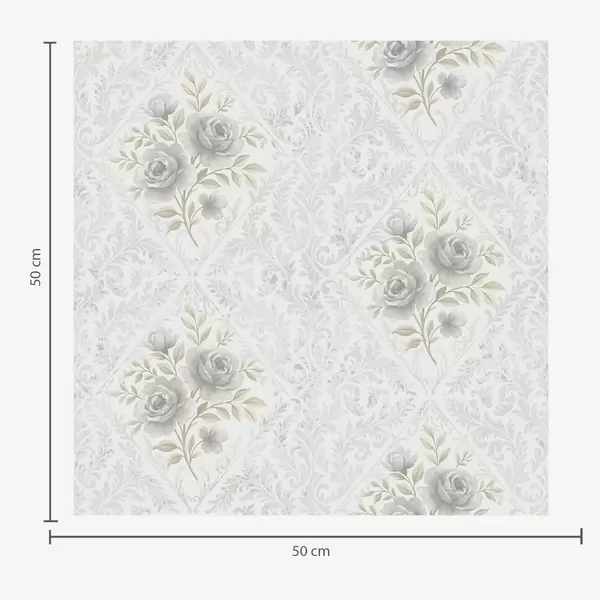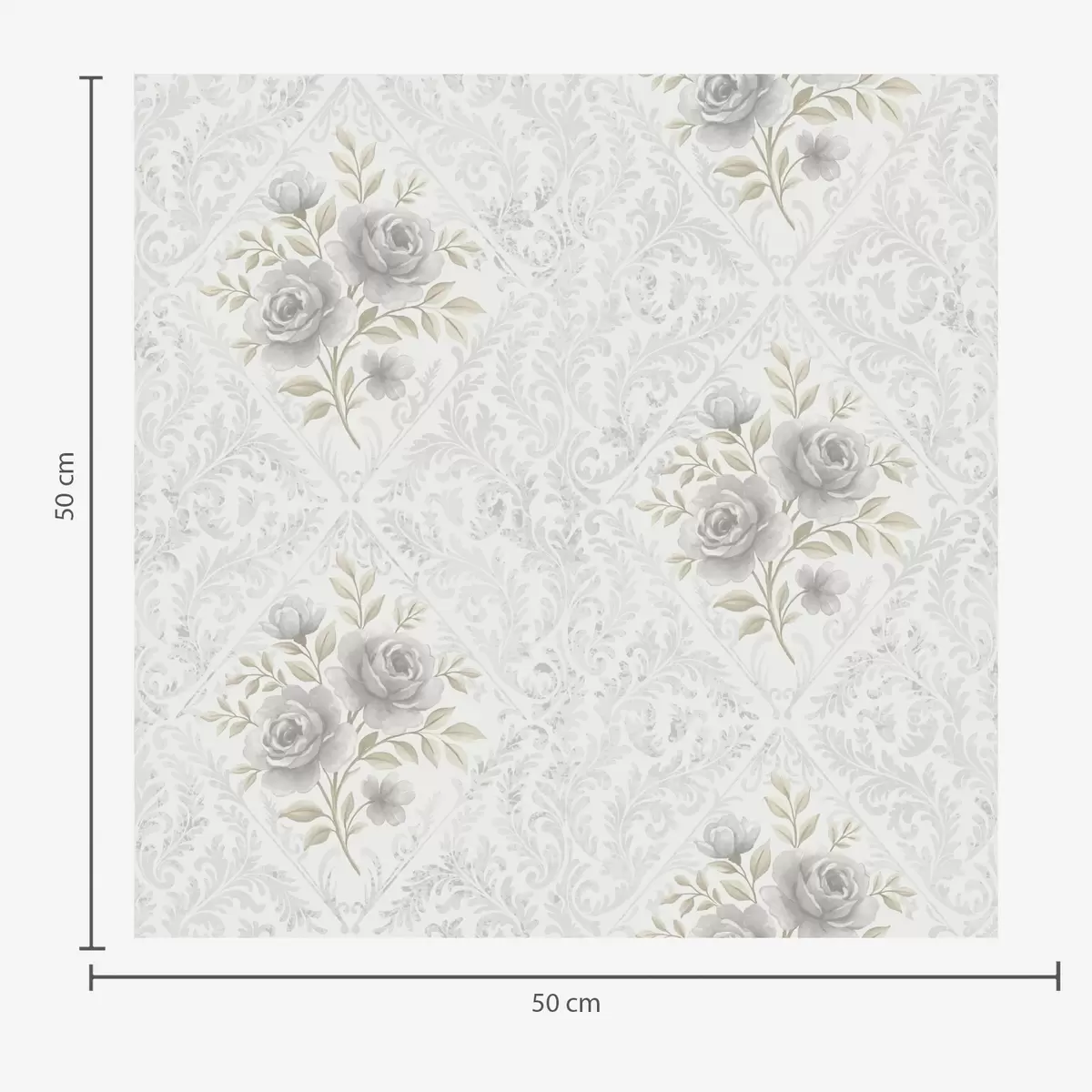 Wallpapers Light damask pattern with grey roses in soft diamonds No. a01024
