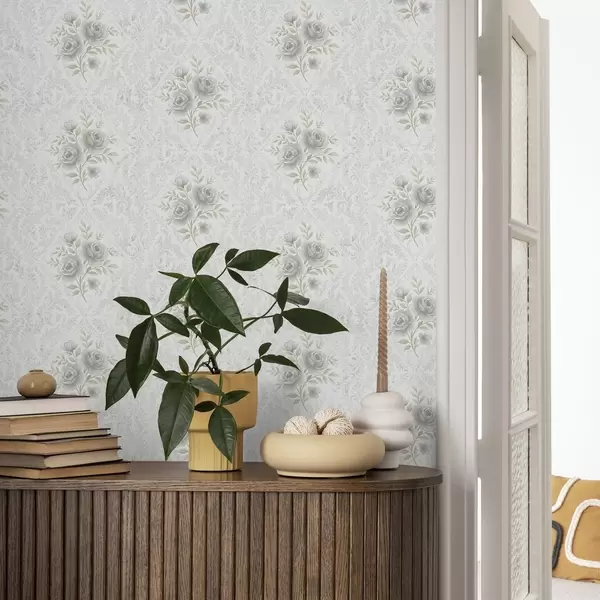 Wallpapers Light damask pattern with grey roses in soft diamonds No. a01024