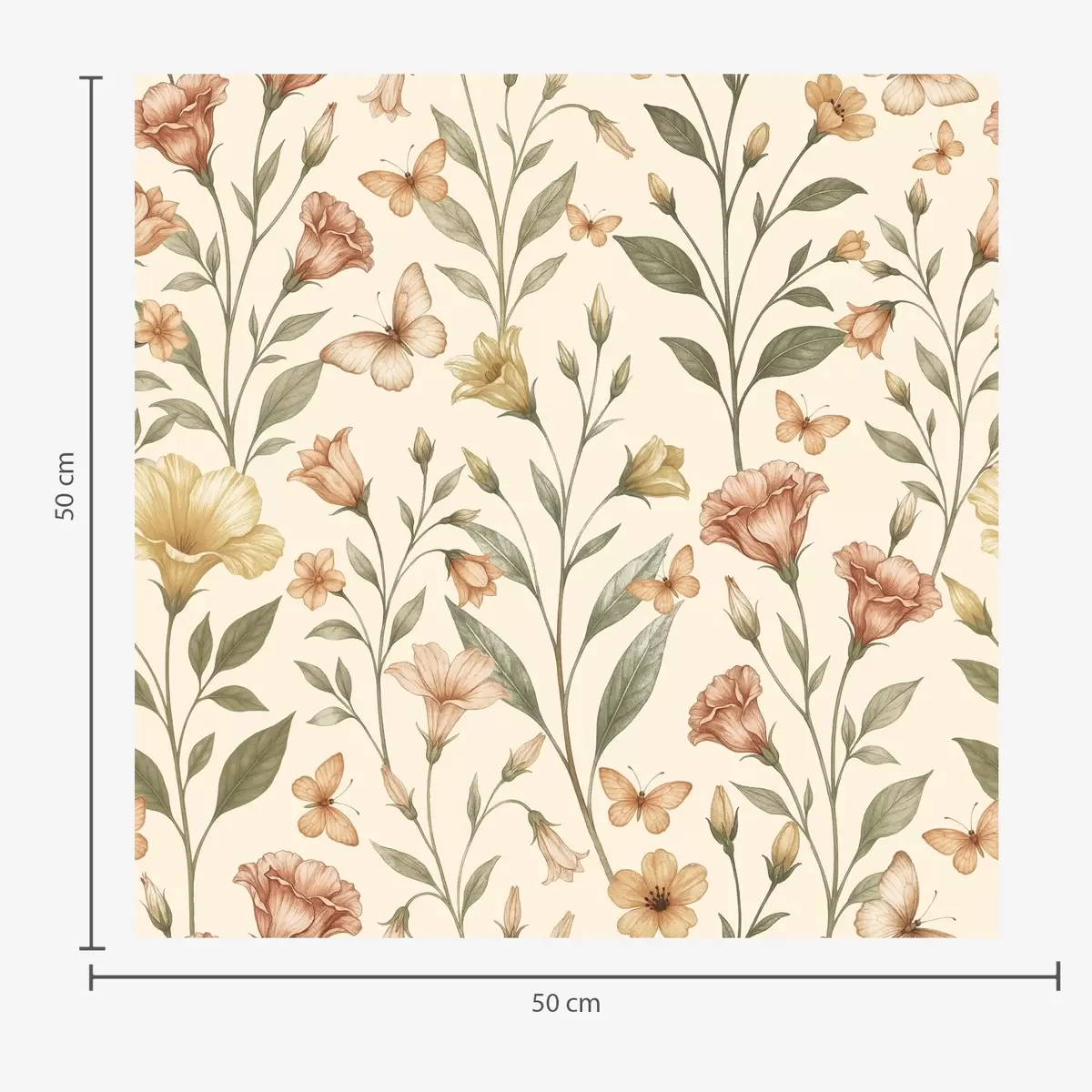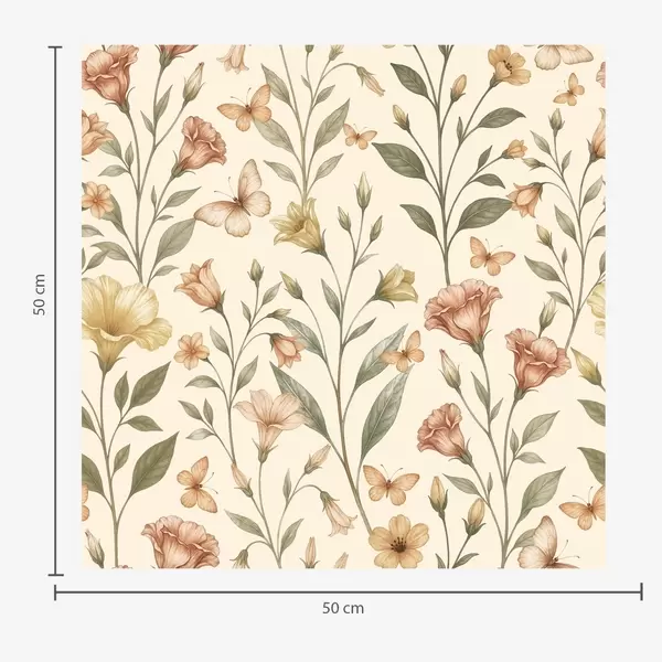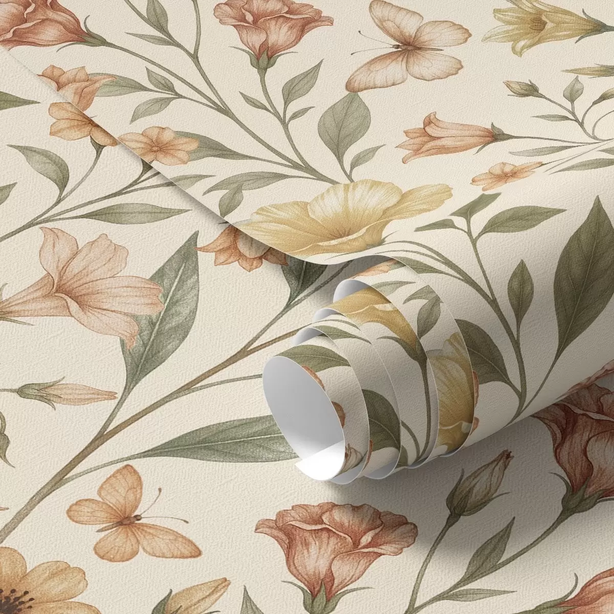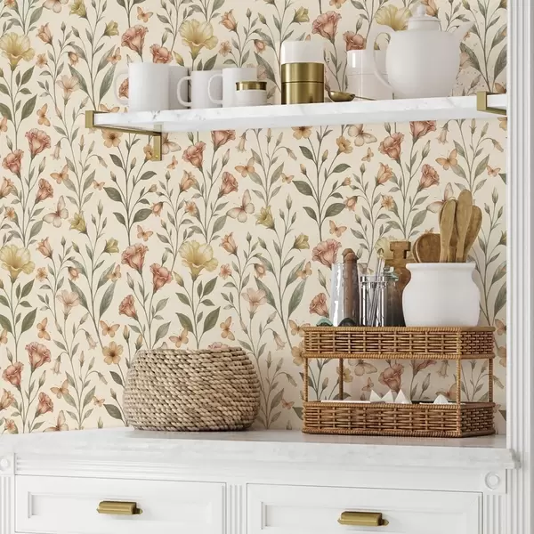 Wallpapers Delicate peach flowers and butterflies on a warm cream background No. a01026