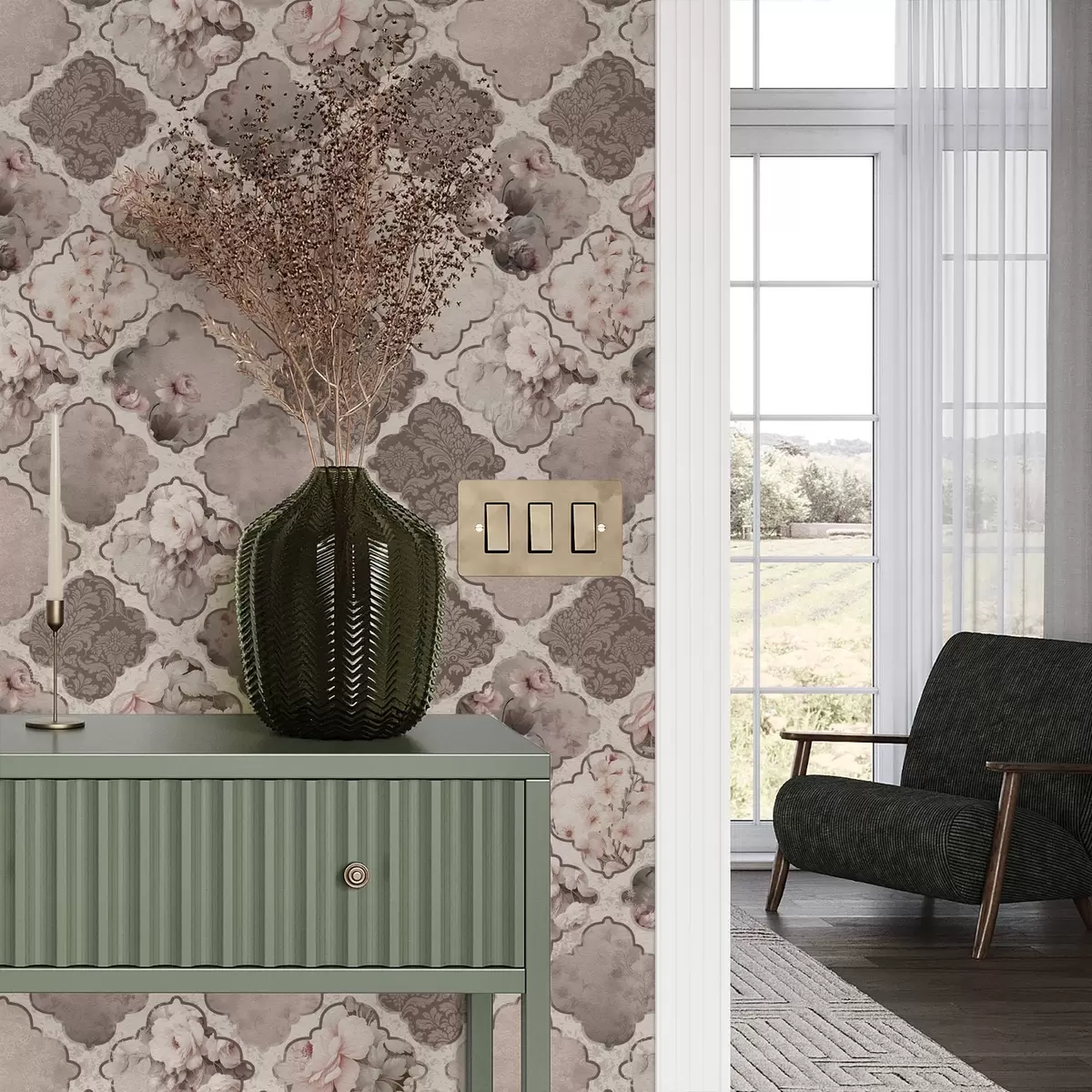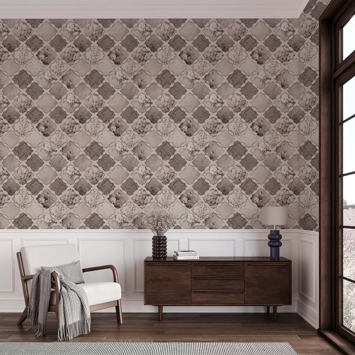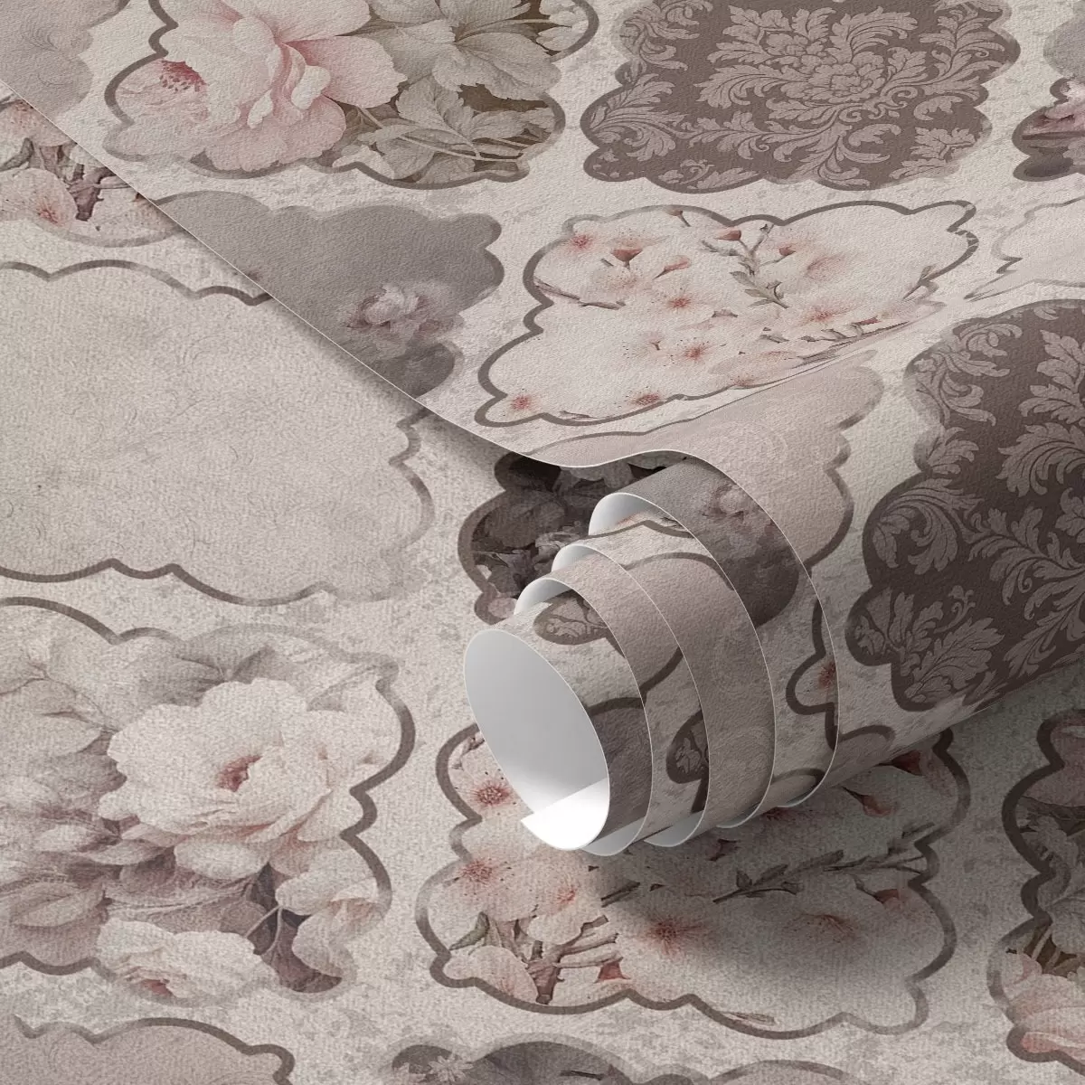 Wallpapers Romantic patchwork of floral medallions in dusty tones No. a01027