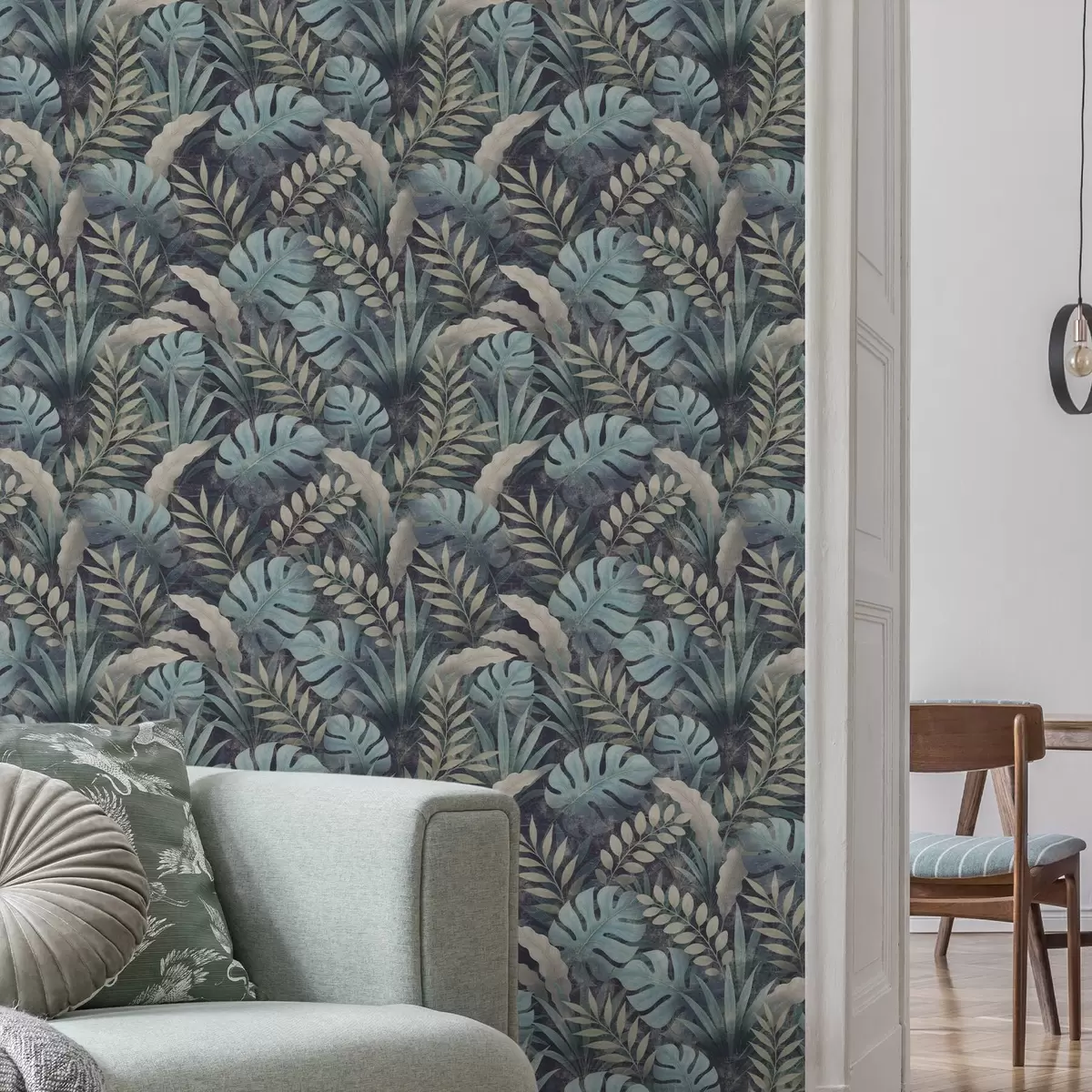 Wallpapers Tropical foliage in cool blue-green tones No. a01035