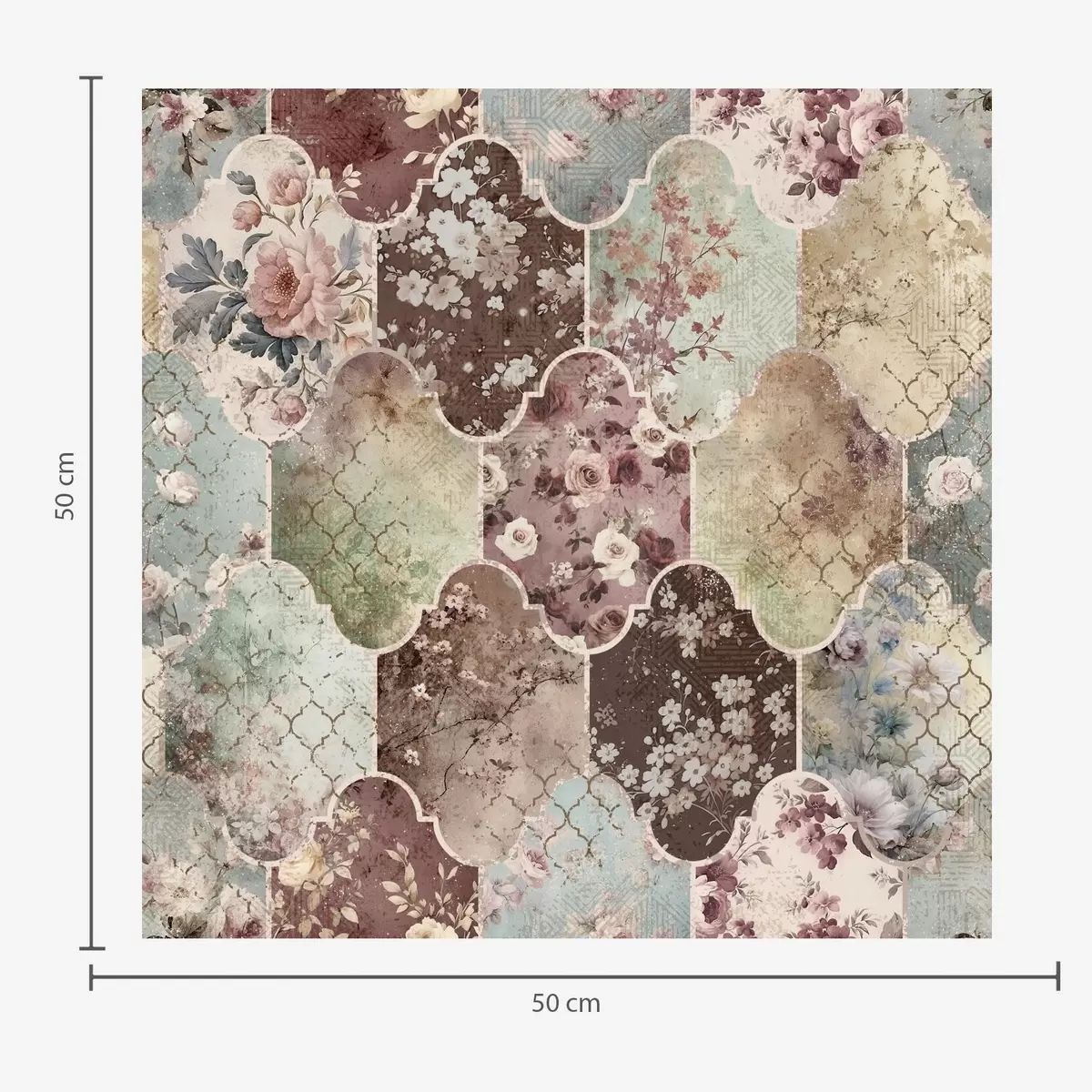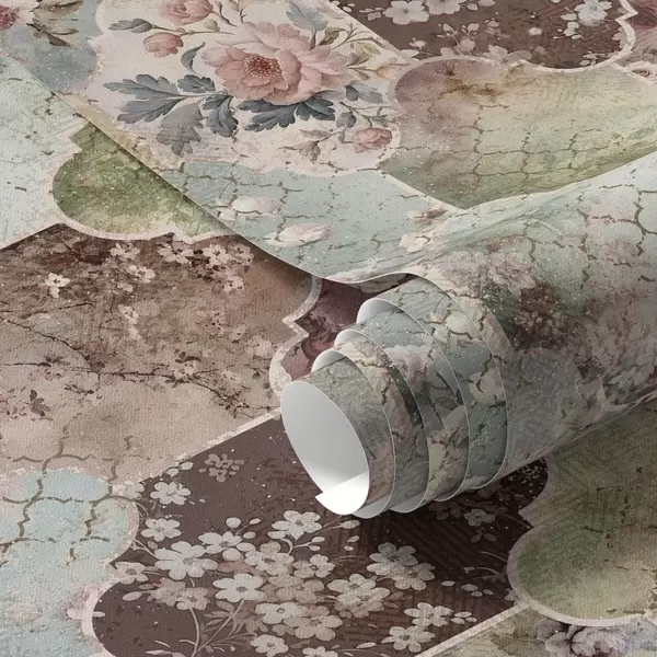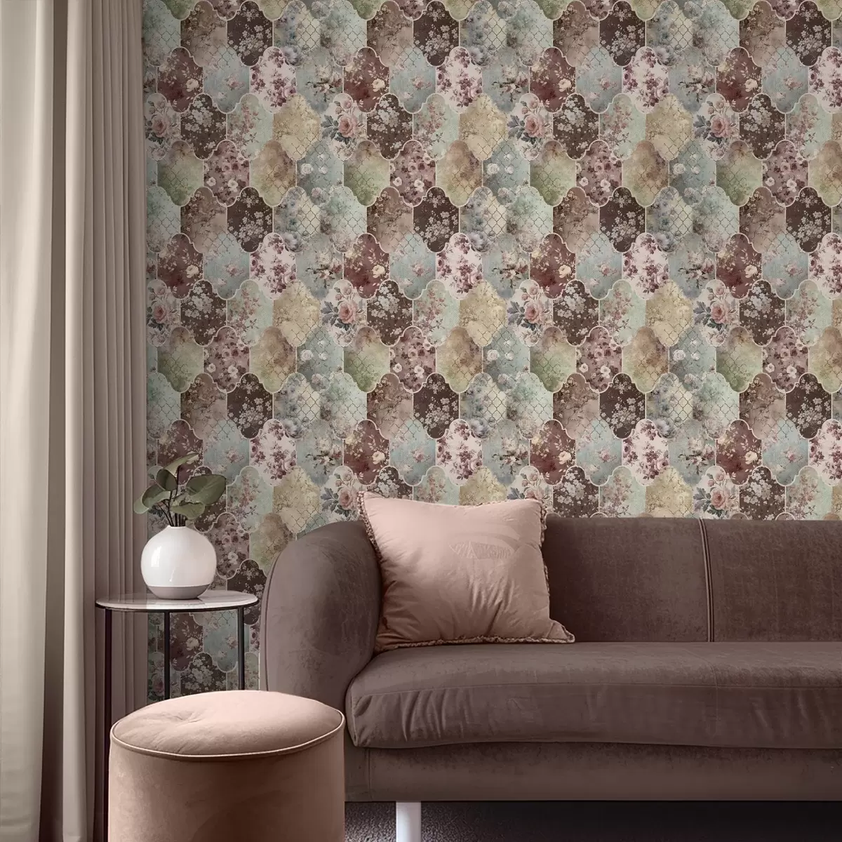 Wallpapers Patchwork of floral panels and worn patterned tiles No. a01038