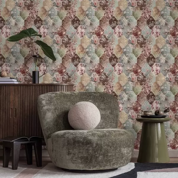 Wallpapers Patchwork of floral panels and worn patterned tiles No. a01038