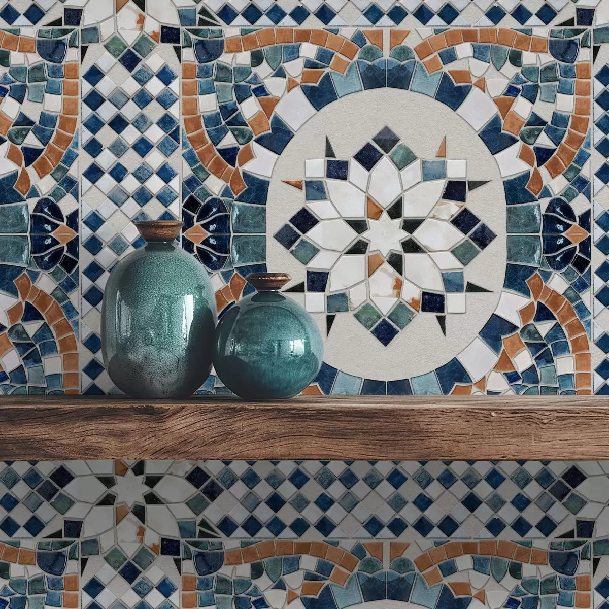 Wallpapers Bright Moroccan mosaic in blue-turquoise tones No. a01043