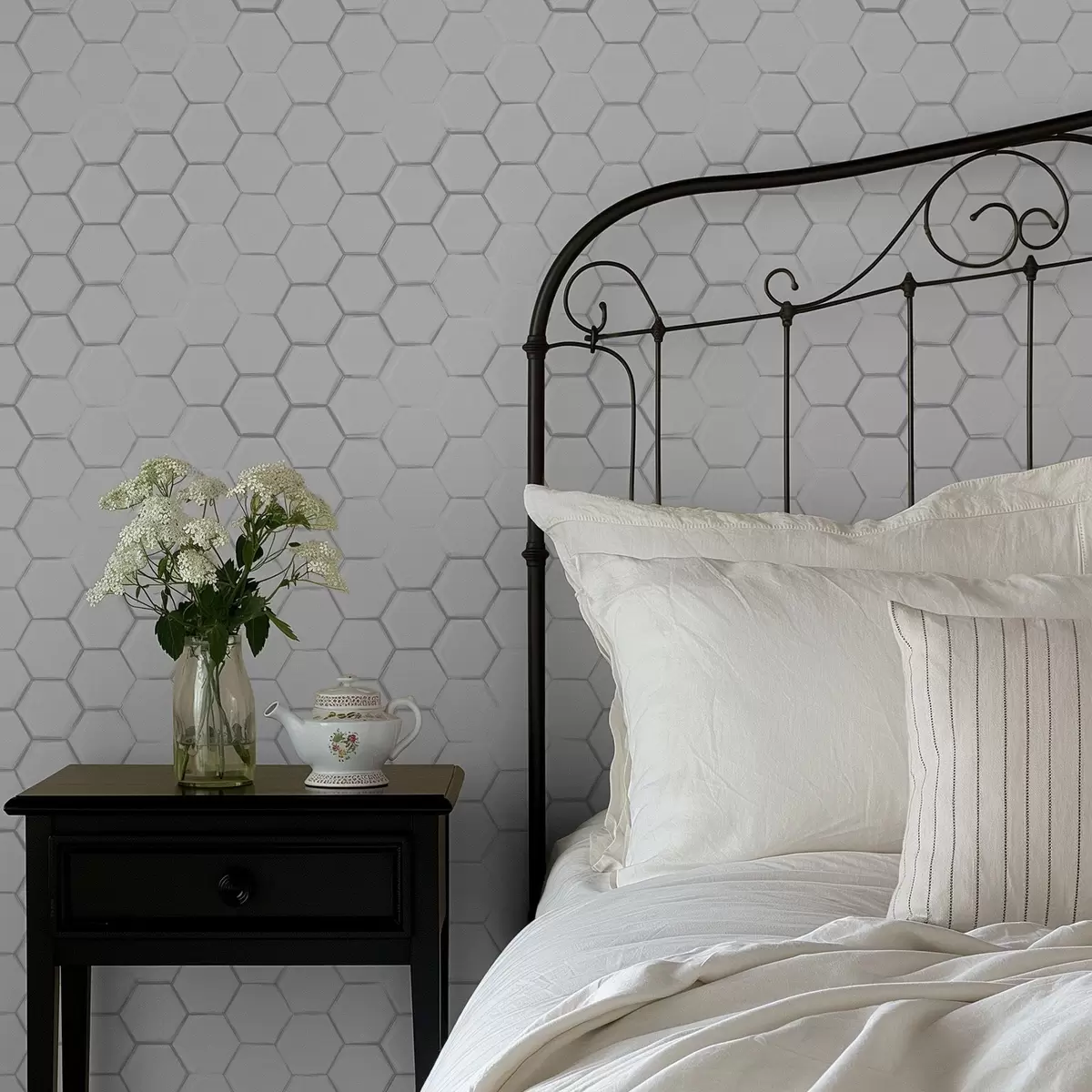 Wallpapers White three-dimensional hexagons on a smooth background No. a01059