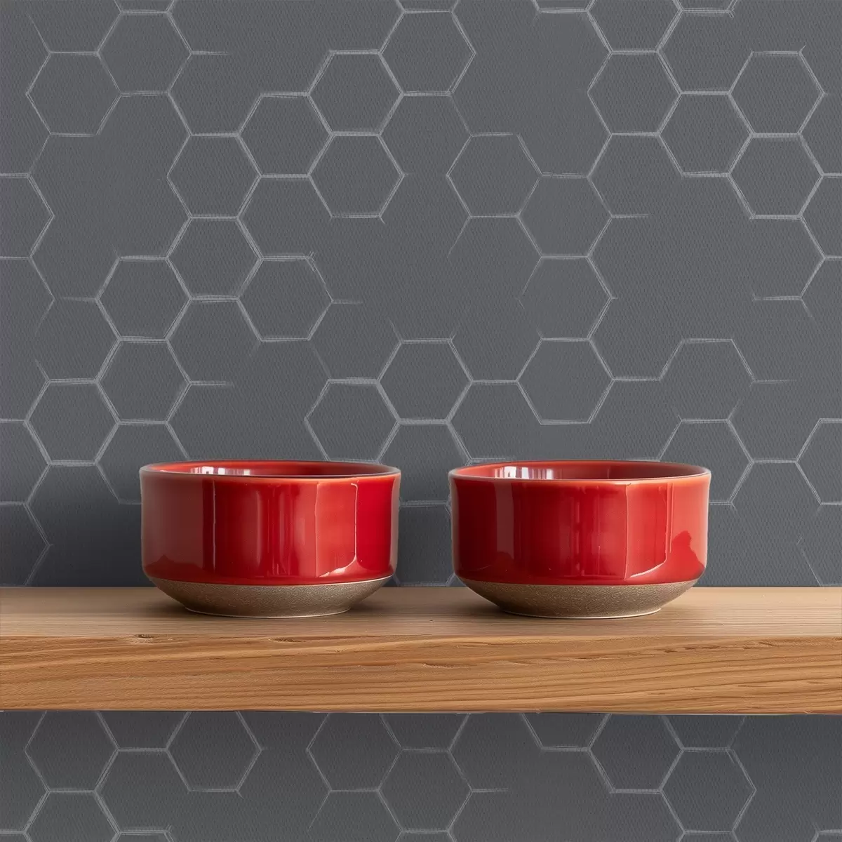 Wallpapers Dark graphite honeycomb pattern with depth No. a01061v1